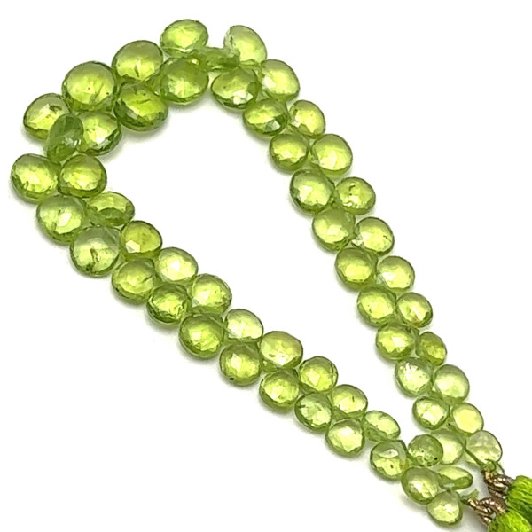 Natural Peridot Briolette Faceted Flat Heart Beads | 5-8mm | 57 Pcs 62 Carats | Intense Green VS Clarity | Semiprecious Gemstone Jewelry Making