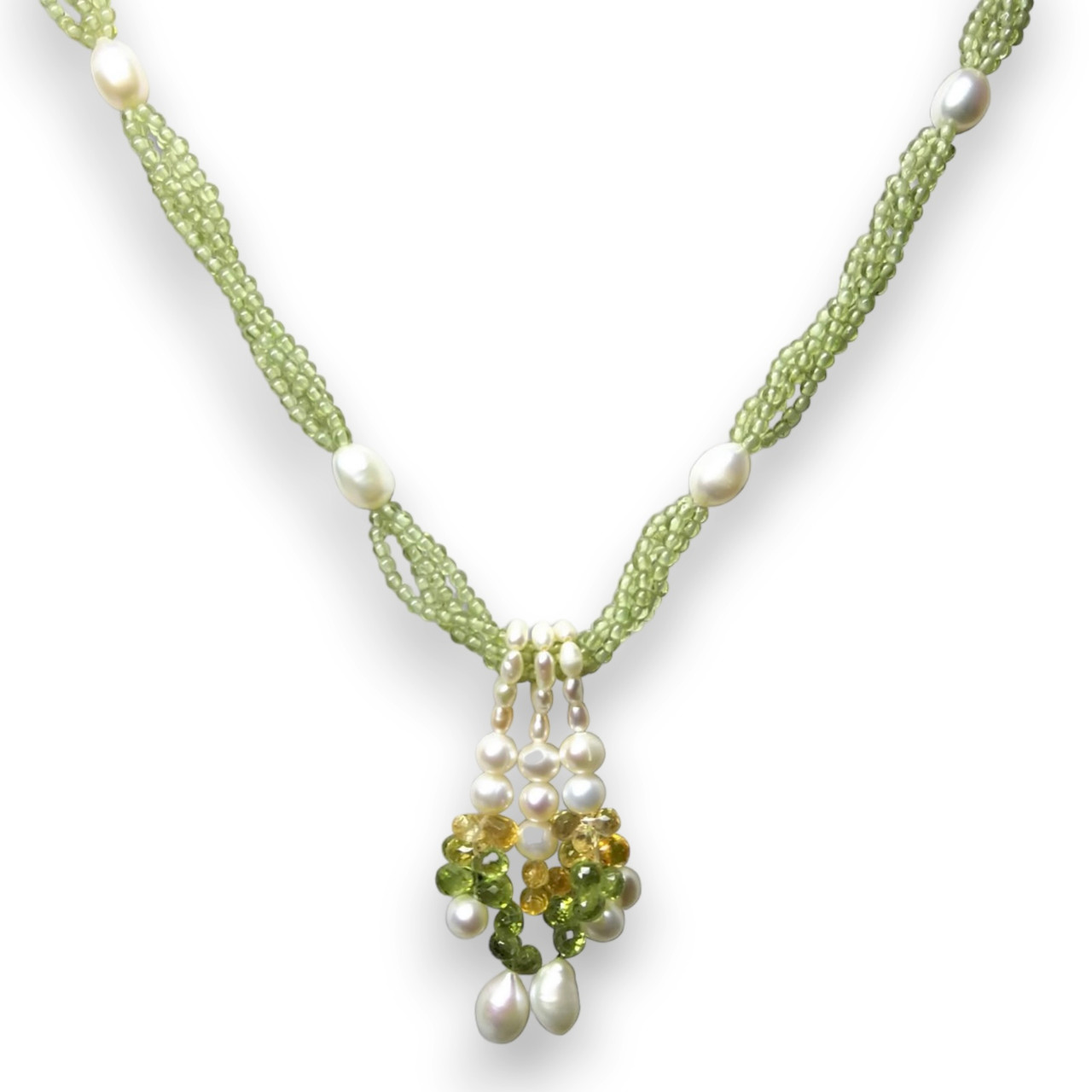 Peridot Citrine Natural Necklace & Plain Pearl 16" Gemstone Jewelry