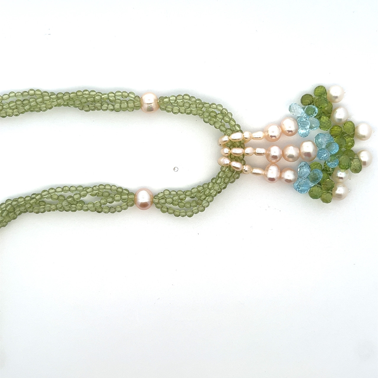 Natural Peridot Pearl Blue Topaz Birthstone Necklace Jewelry