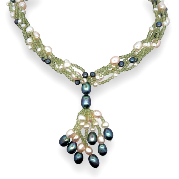 Peridot Natural Round Plain & Pearl Birth Gemstone Necklace