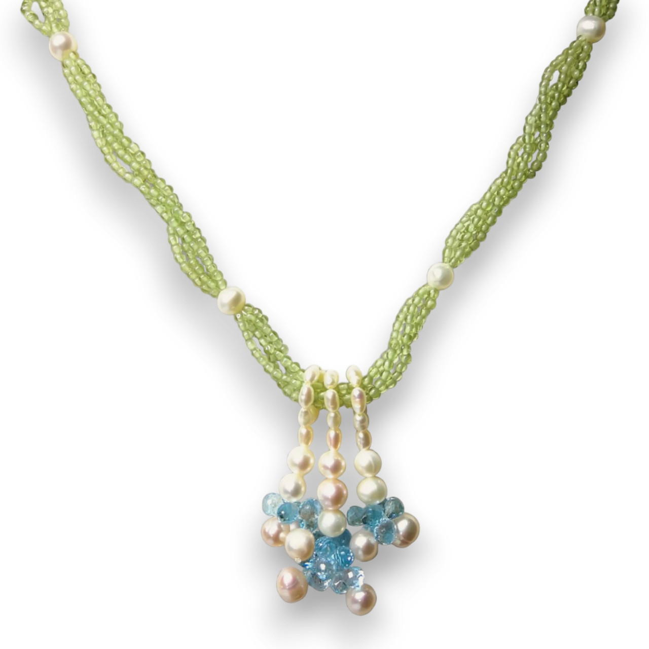 Peridot Natural with Blue Topaz Drops & Pearl Gem Necklace