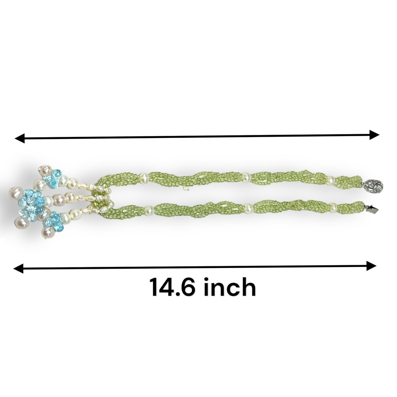 Peridot Natural with Blue Topaz Drops & Pearl Gemstone Necklace