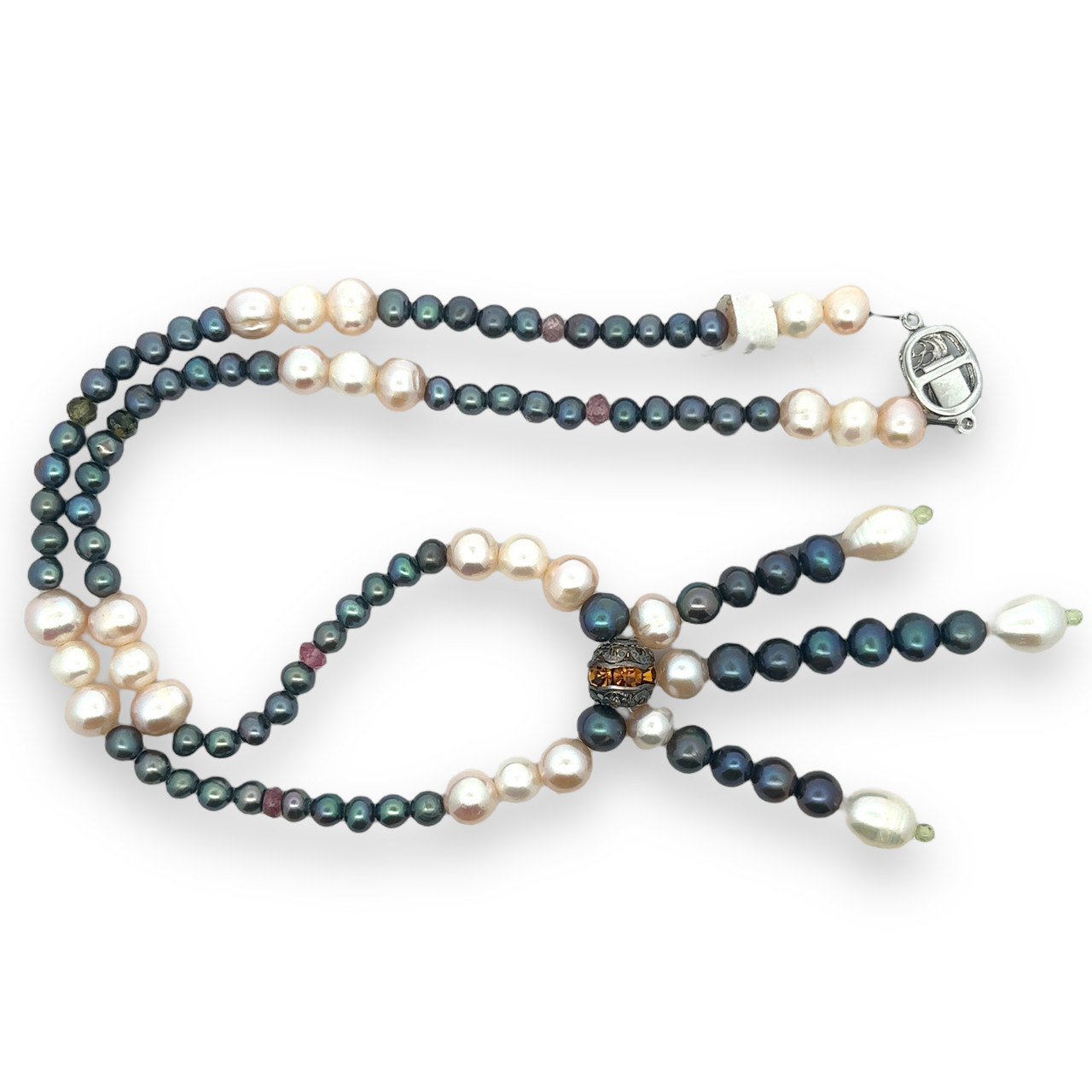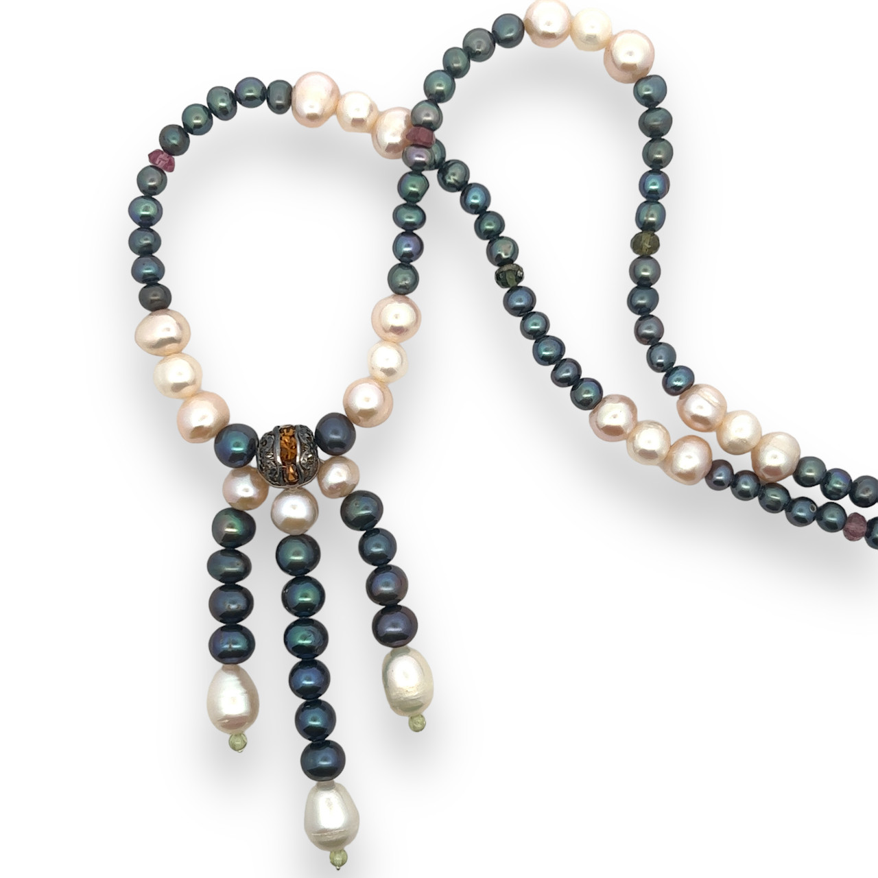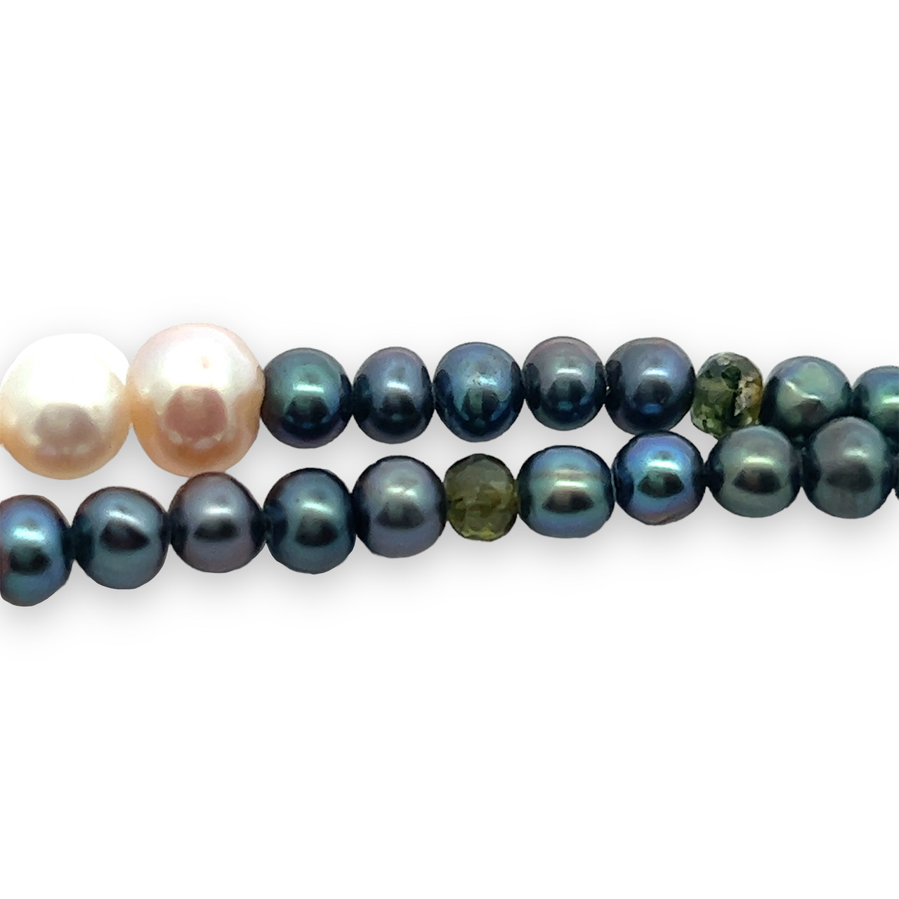 Natural Pink Green Tourmaline Peridot Pearl Multi Color Necklace