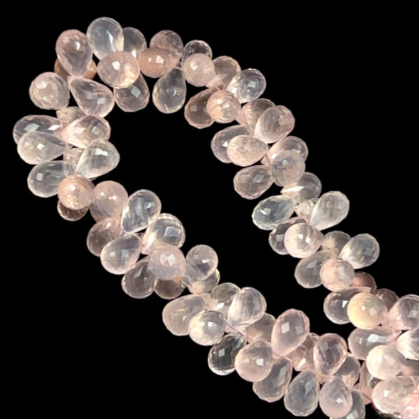 Natural Rose Quartz Briolette Drop Beads | 10x7, 11x7mm | 83 Pcs 250 Carats | Baby Rose Pink | SI1 Clarity | January Birthstone Jewelry Making
