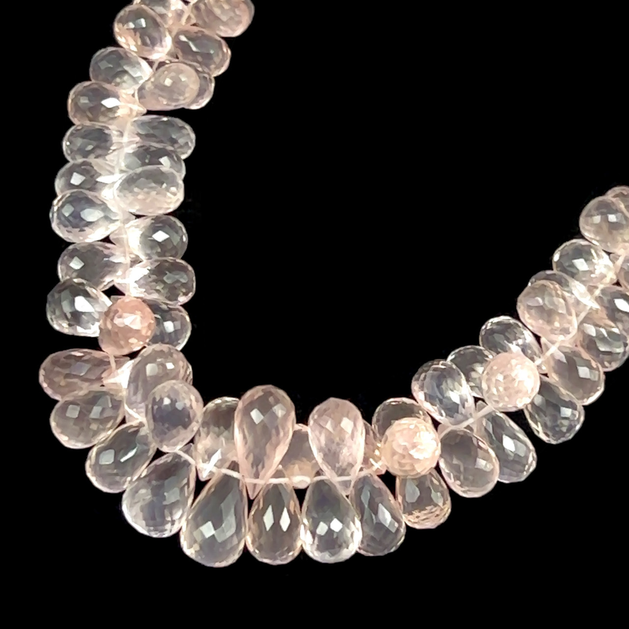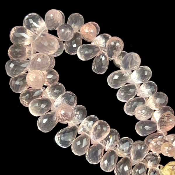 Natural Rose Quartz Drop Briolette Beads | 10x6-13x8mm 60 Pcs 162 Carats | Crepe Pink Color VVS Clarity | Jewelry Creation