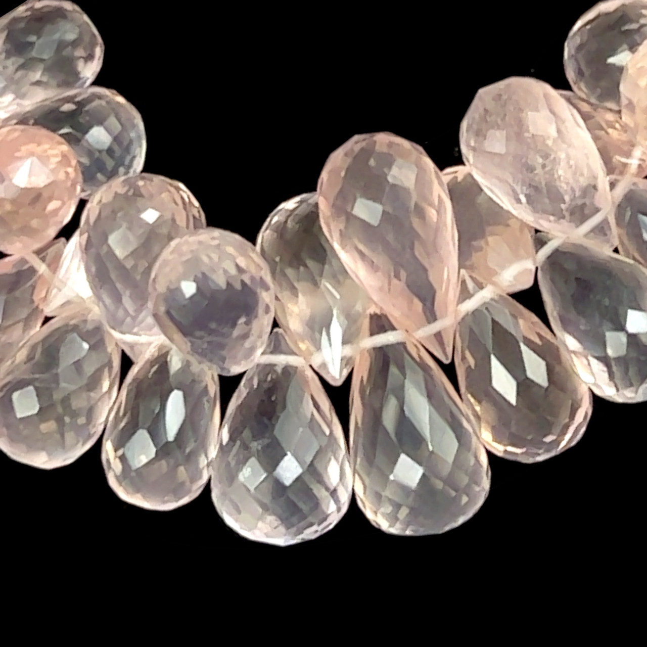 Natural Brazilian Rose Quartz Drop Briolette Beads | 10x6-13x8mm | 60 Pcs 162 Carats | Crepe Pink | VVS Clarity Semiprecious Gemstone Jewelry Making