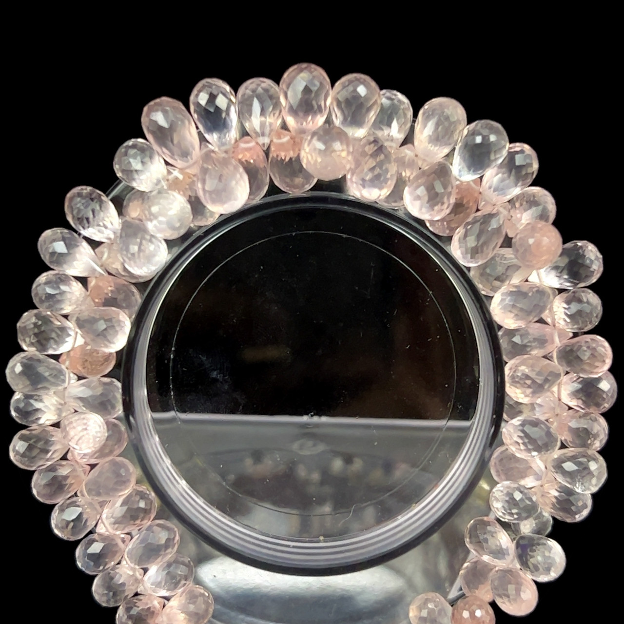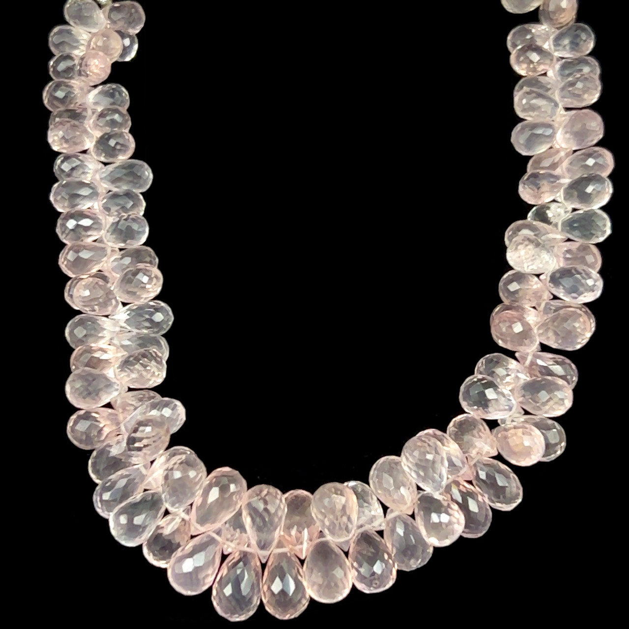 Rose Quartz Natural Drop Briolette Facet Cut 8x6-11x6mm Crepe Pink Drilled Gemstone