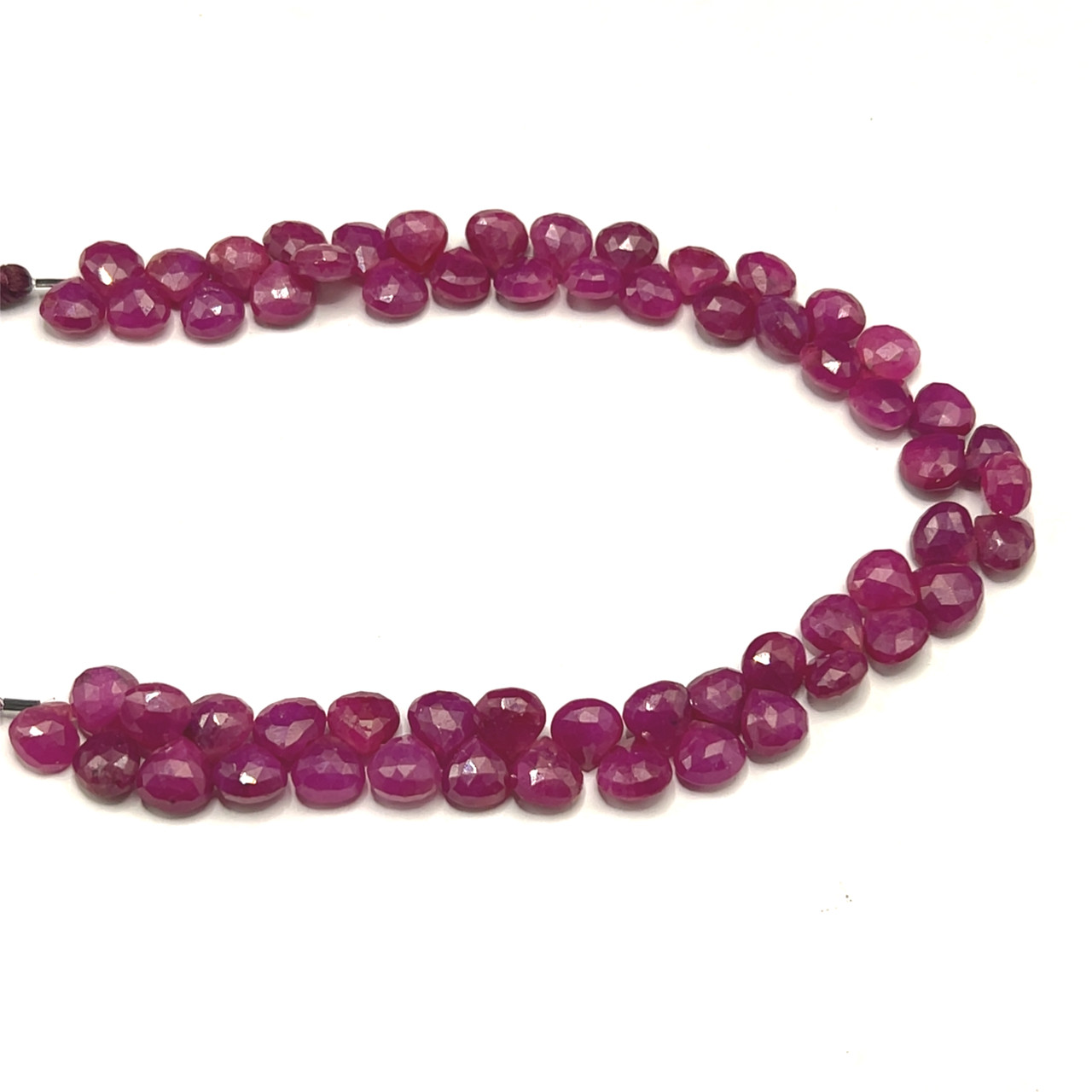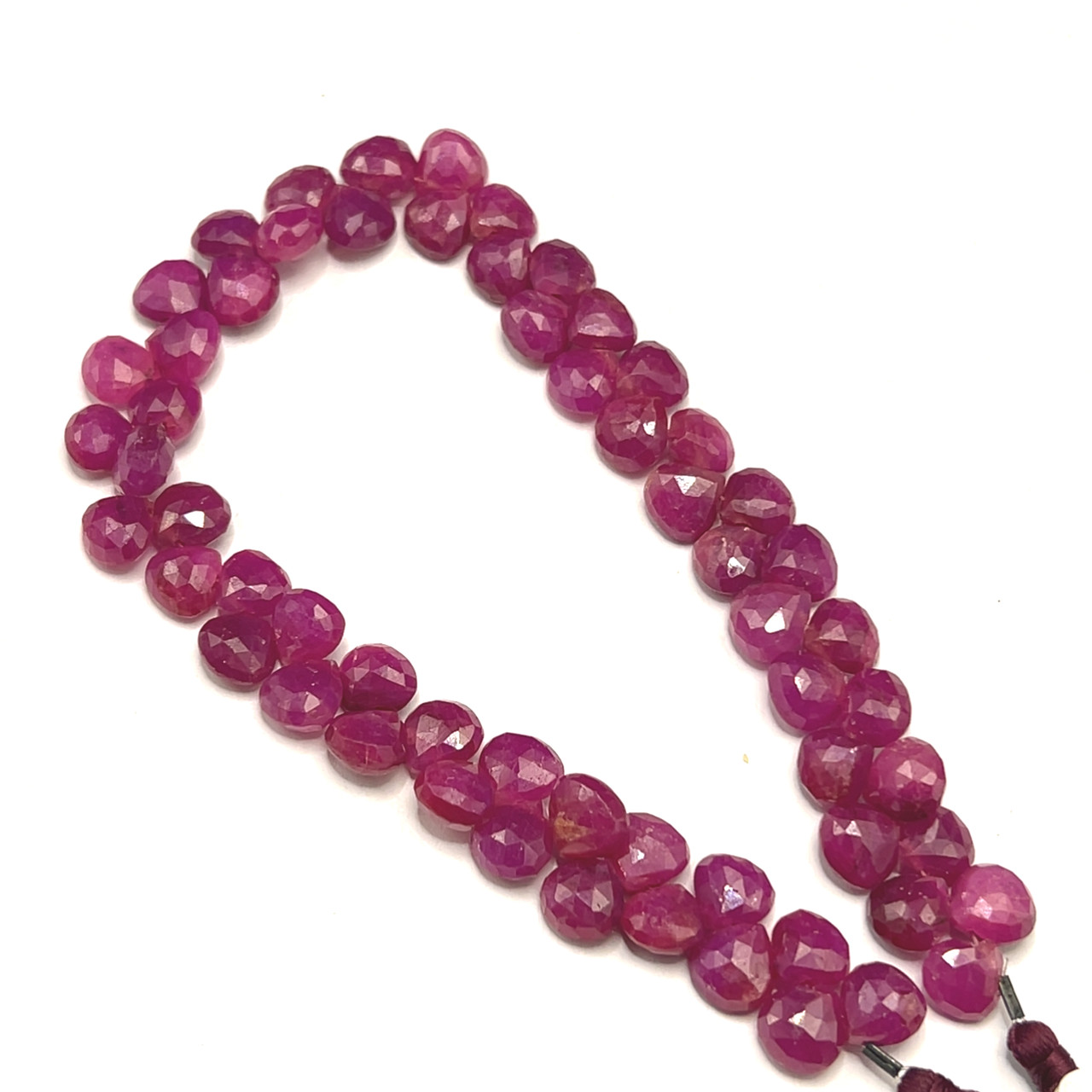 Ruby Natural Heart Shape Briolette Facet Cut 7mm Good Quality Carmine Color July Gemstone Drilled Beads