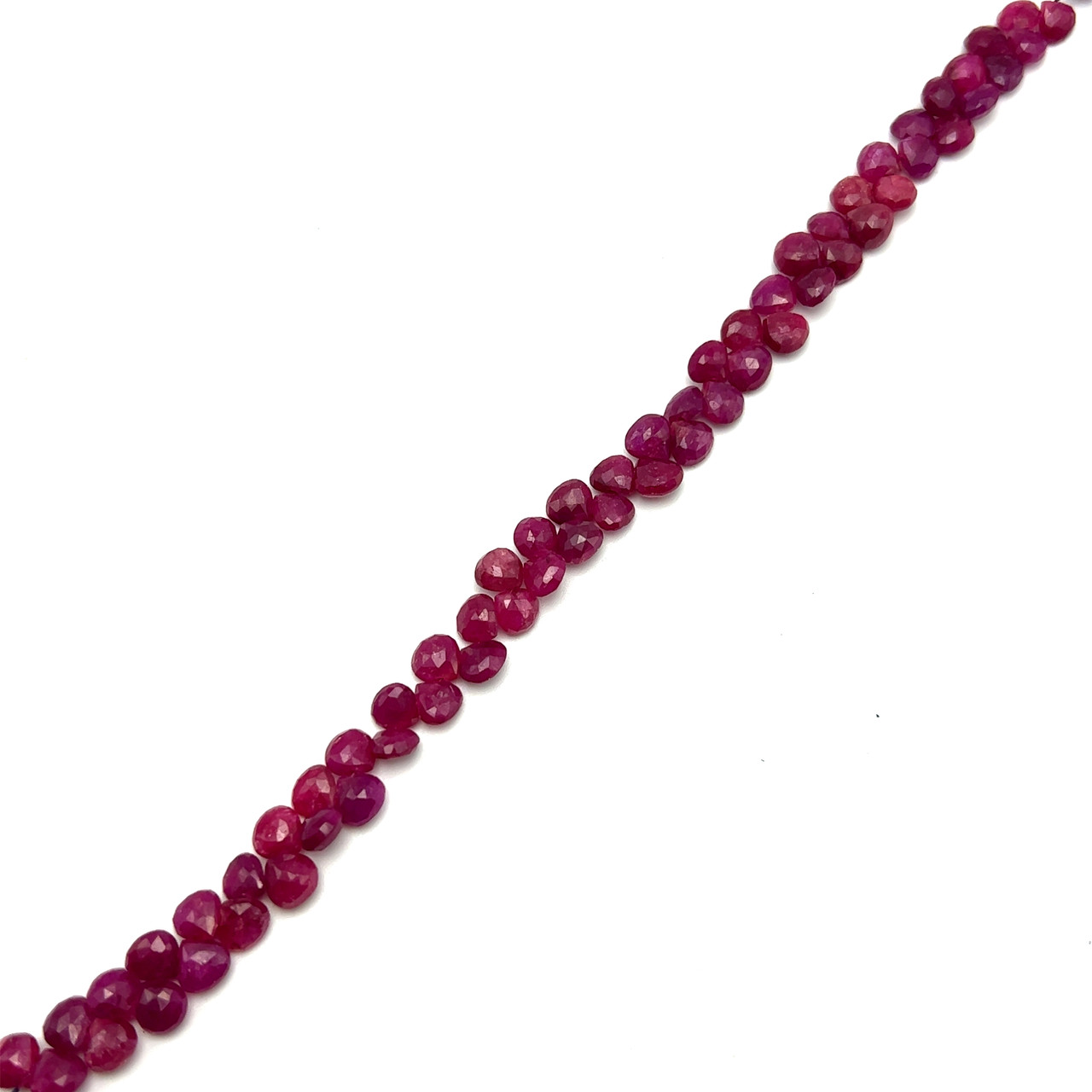 Ruby Natural Gemstone Briolette Facet Cut Heart Shape 7mm Carmine Color July Birthstone Drilled Beads for Jewelry Making