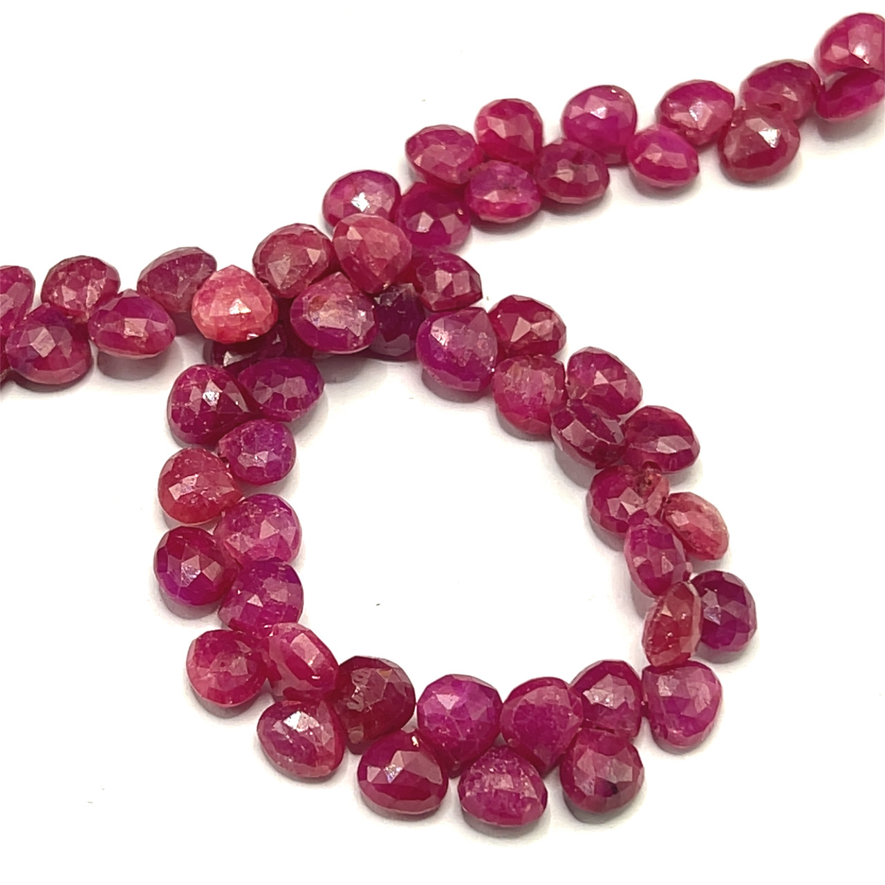 Ruby Natural Gemstone Heart Shape Briolette Facet Cut 7mm Hot Pink Color July Birthstone DIY Craft Beads