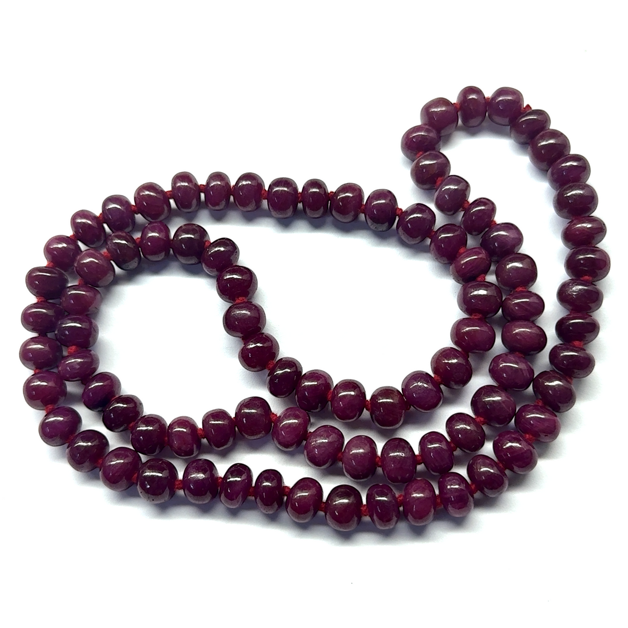 High Quality Natural Ruby Necklace | 9–10mm Smooth Rondelle Beads 87 Pcs 620 Carats | Crimson Red VVS Clarity | 26.4 Inch Fine Precious Gemstone Jewelry