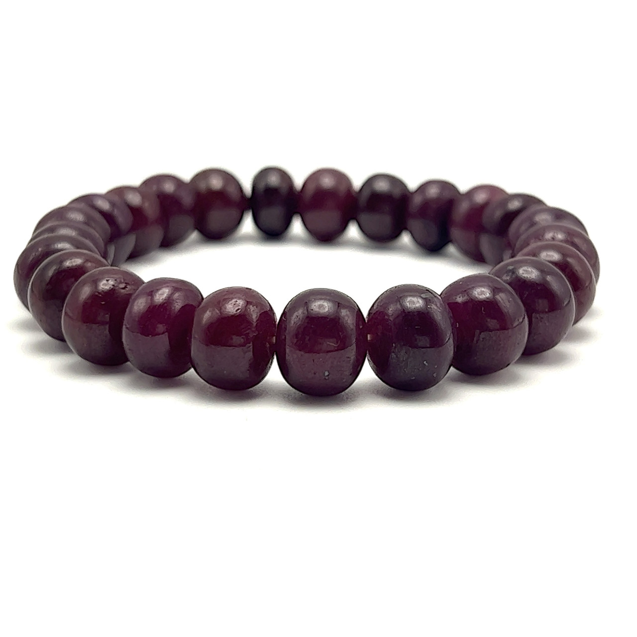 Natural Ruby Bracelet | 10-11mm Smooth Rondelle Beads 24 Pcs 206 Carats | Scarlet Red VVS Clarity | 2.5 Inch Inner Diameter Gemstone Jewelry