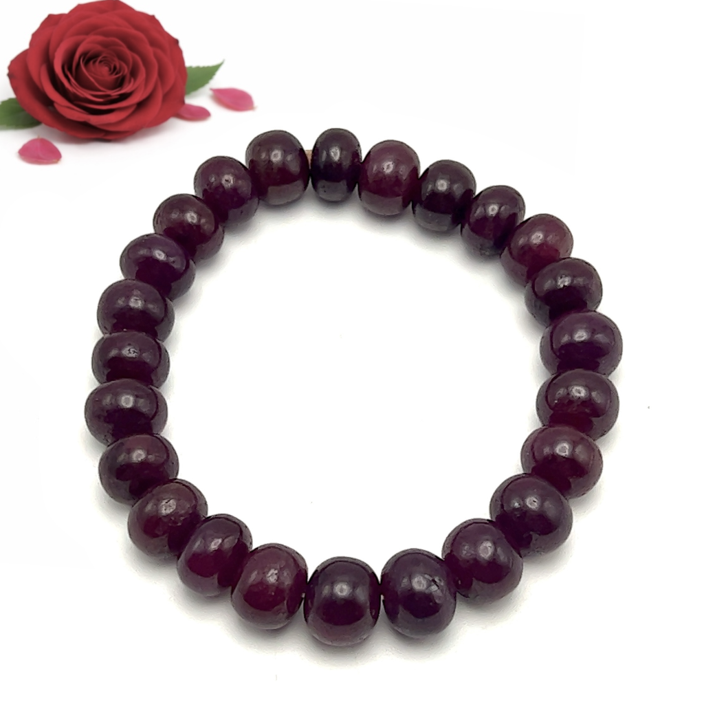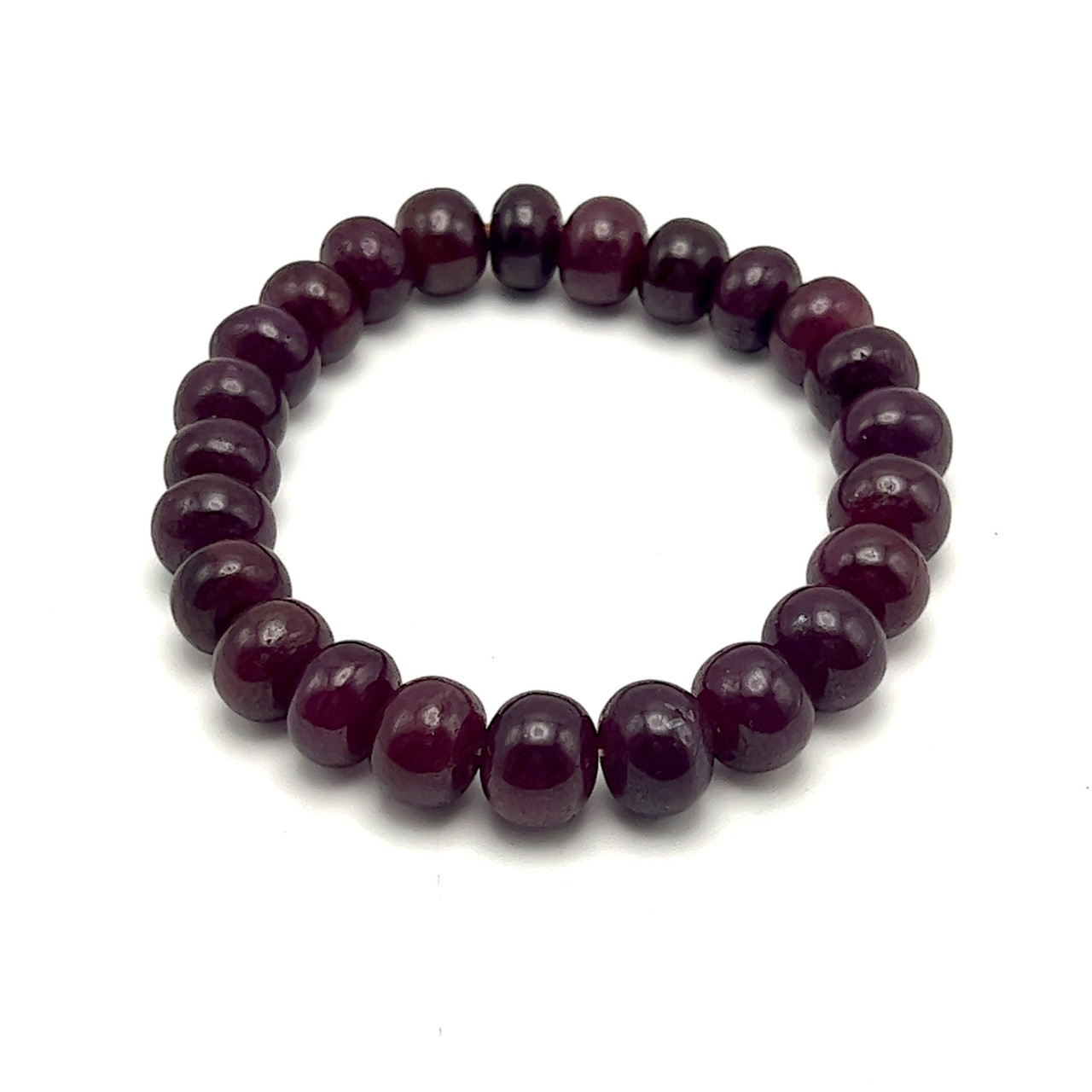 Natural Ruby Bracelet | 10-11mm Smooth Rondelle Beads 24 Pcs 206 Carats | Scarlet Red VVS Clarity | 2.5 Inch Inner Diameter Gemstone Jewelry
