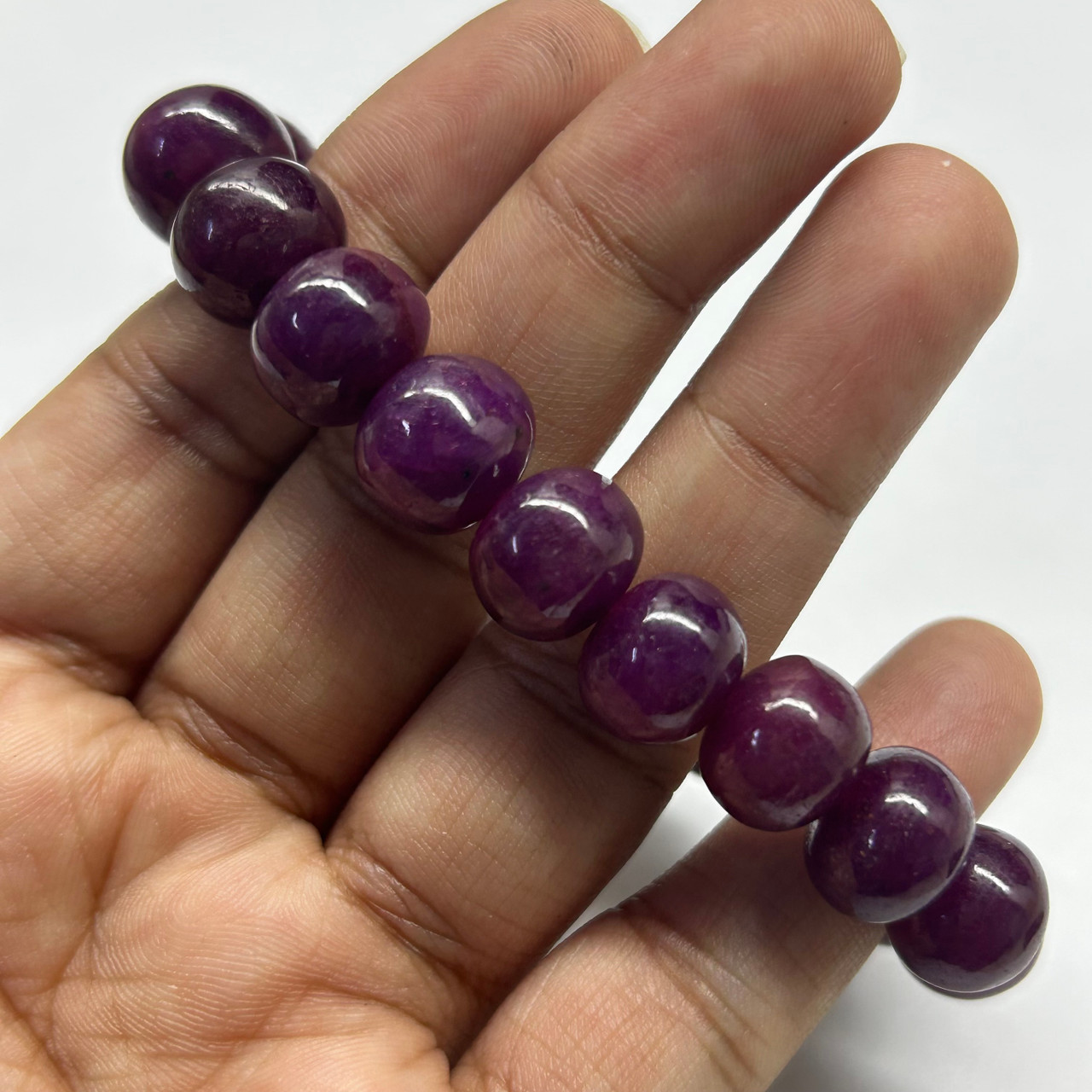 Natural Ruby Bracelet | 10-12mm Smooth Rondelle Beads 19 Pcs 235 Carats | Deep Crimson Red VVS Clarity | 2.5 Inch Inner Diameter Gemstone Jewelry