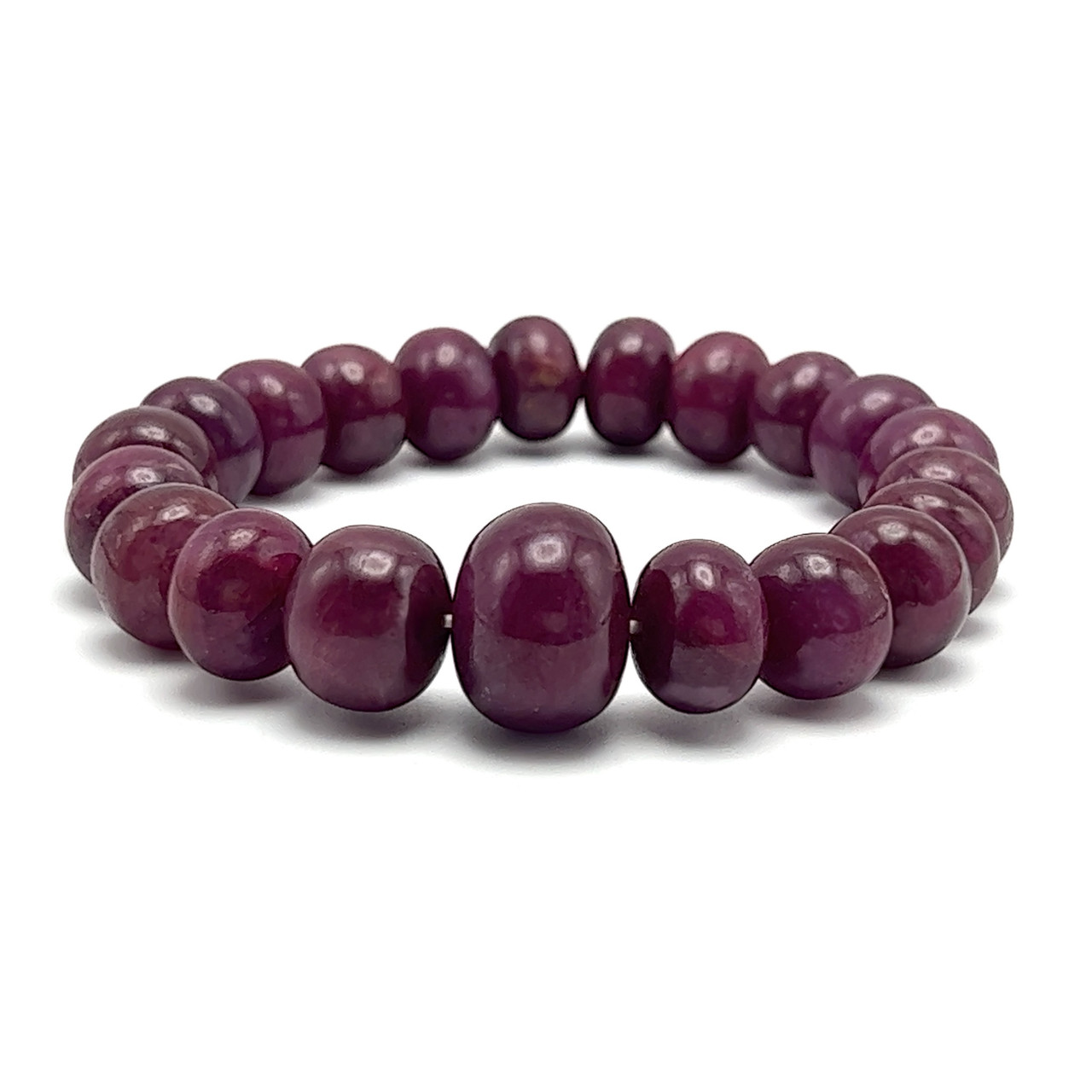 Natural Ruby Stretch Bracelet | 10–15mm Smooth Rondelle Beads 21 Pcs 266 Carats | Burgundy Red VVS Clarity | Genuine Gemstone Jewelry