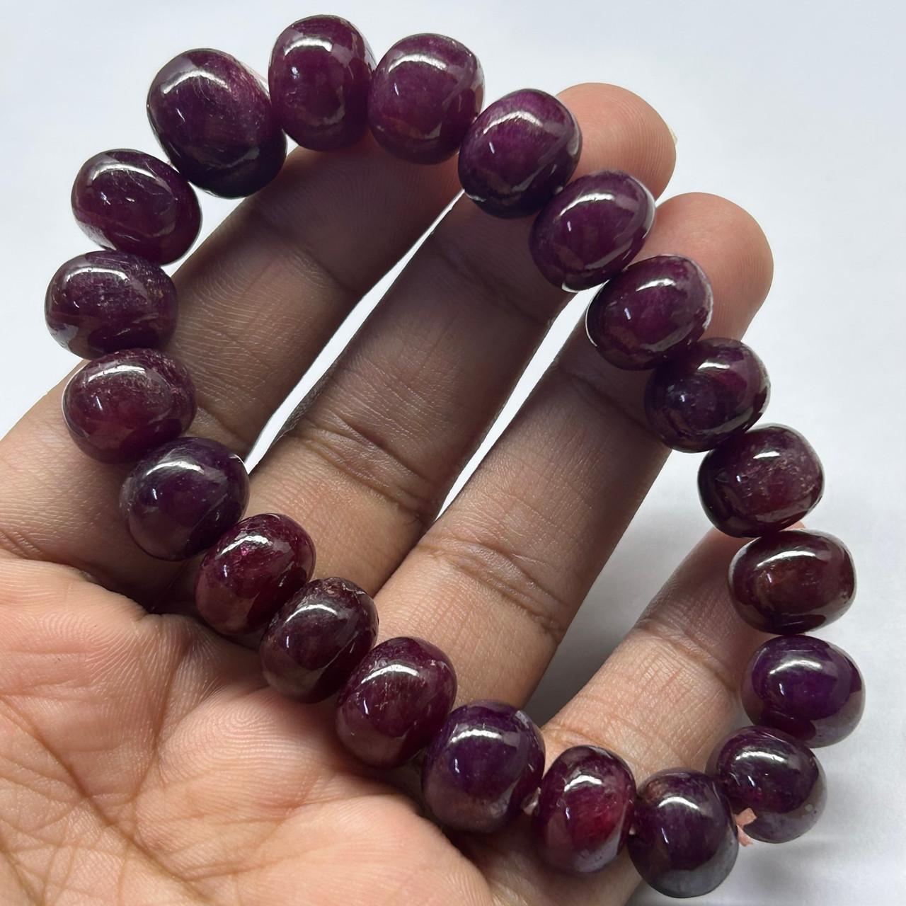 Natural Ruby Bracelet | 11–14mm Smooth Rondelle Beads 21 Pcs 280 Carats | Scarlet Red VVS Clarity | 2.5 Inch Inner Diameter Classic Gemstone Jewelry