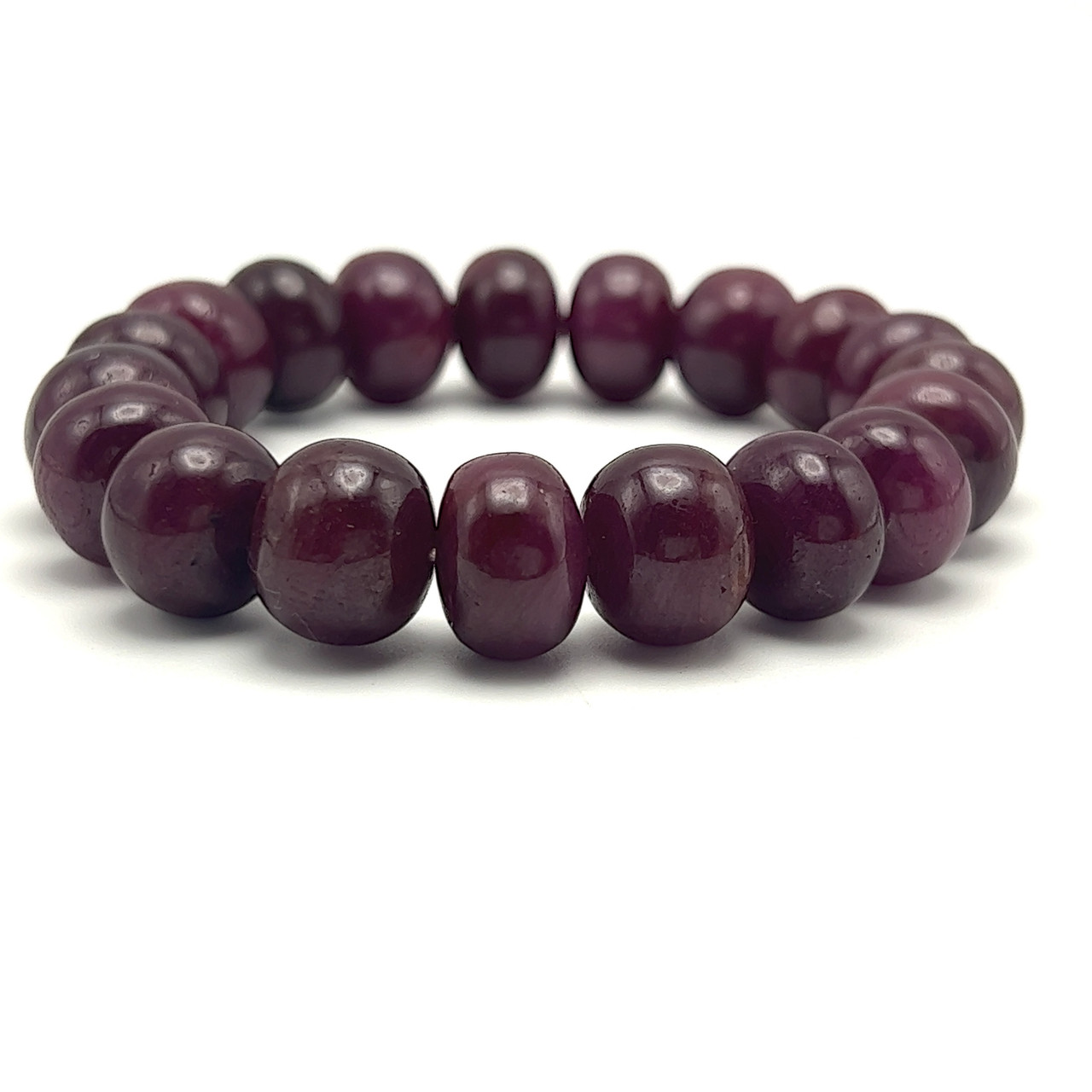 Natural Ruby Bracelet | 12–13mm Smooth Rondelle Beads 19 Pcs 300 Carats | Deep Crimson Red VVS Clarity | 2.6 Inch Inner Diameter Gemstone Jewelry
