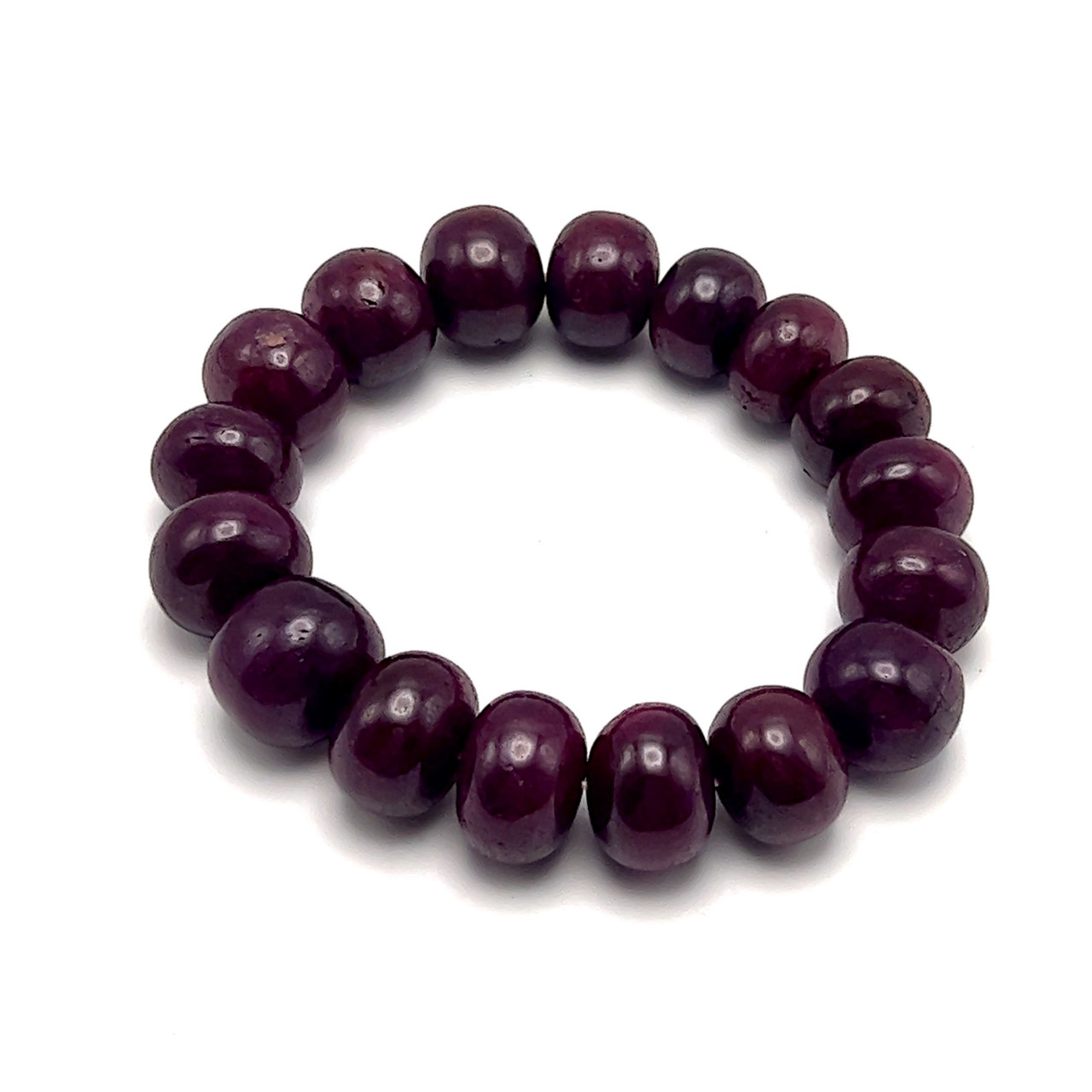 Natural Ruby Bracelet | 12-14mm Smooth Rondelle Beads 17 Pcs 345 Carats | Deep Scarlet Red VVS Clarity | 2.5 Inch Inner Diameter Beaded Gemstone Jewelry