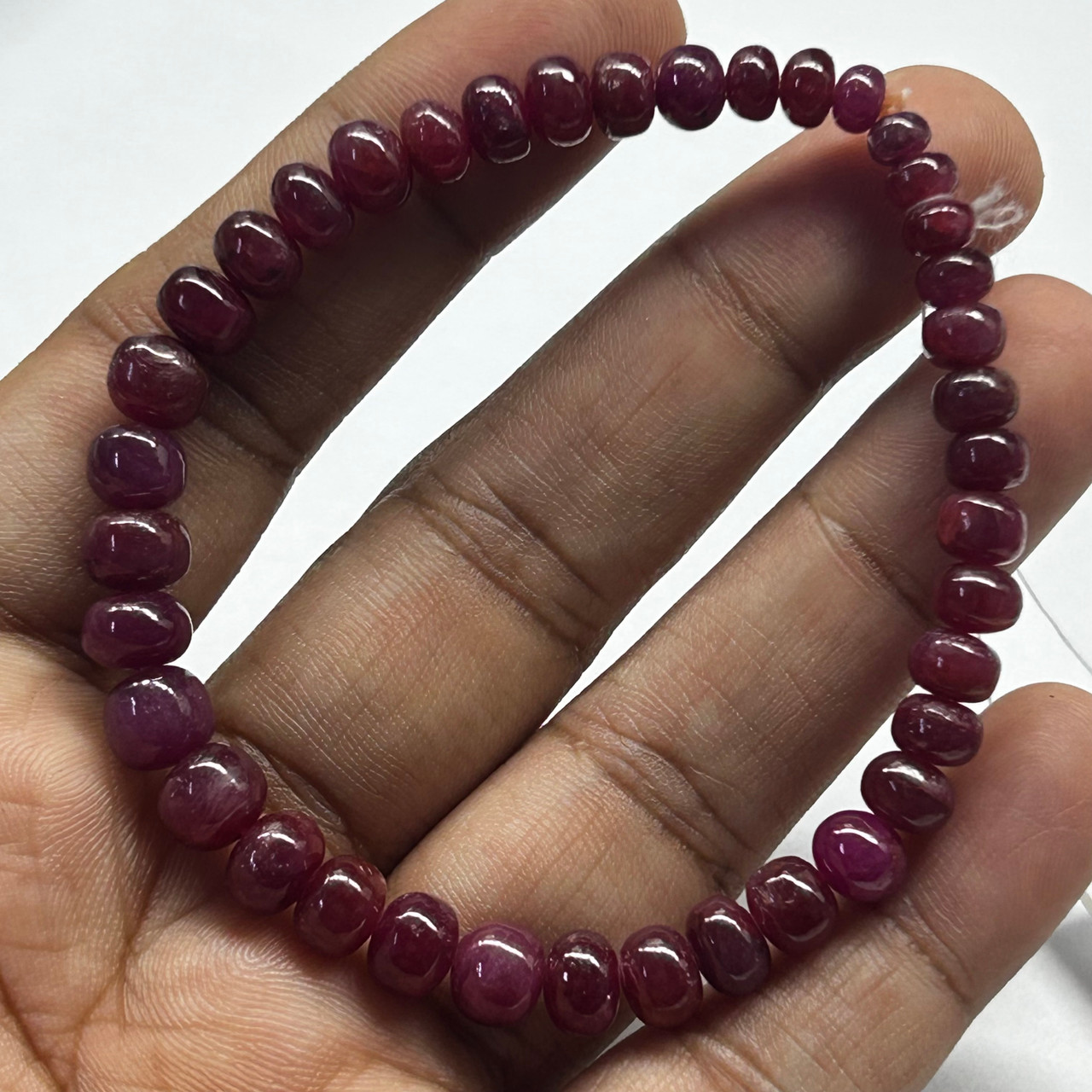 Natural Ruby Bracelet | 4-7mm Smooth Rondelle Beads 39 Pcs 64 Carats | Rich Burgundy Red VVS Clarity | Unisex Gemstone Jewelry