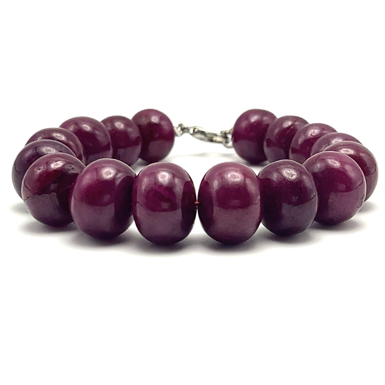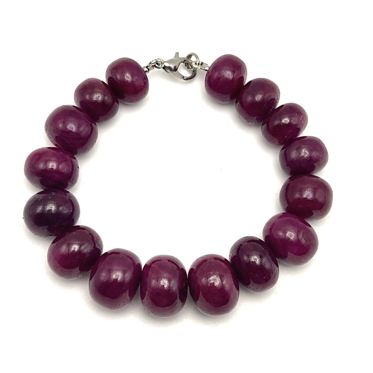 Natural Ruby Beaded Bracelet | 12–15mm Smooth Rondelle Beads 16 Pcs 305 Carats | Burgundy Red VS Clarity | 7 Inch Elegant Gemstone Jewelry