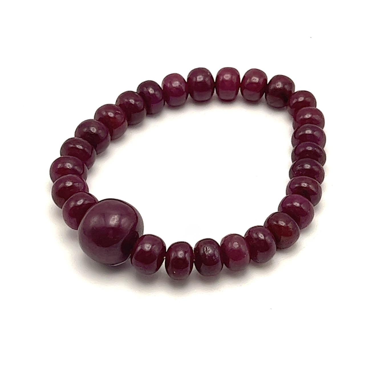 Natural Ruby Gemstone Bracelet | 8-15mm Smooth Rondelle Beads 27 Pcs 166 Carats | Deep Burgundy Red VVS Clarity | Stretchable Unisex Jewelry