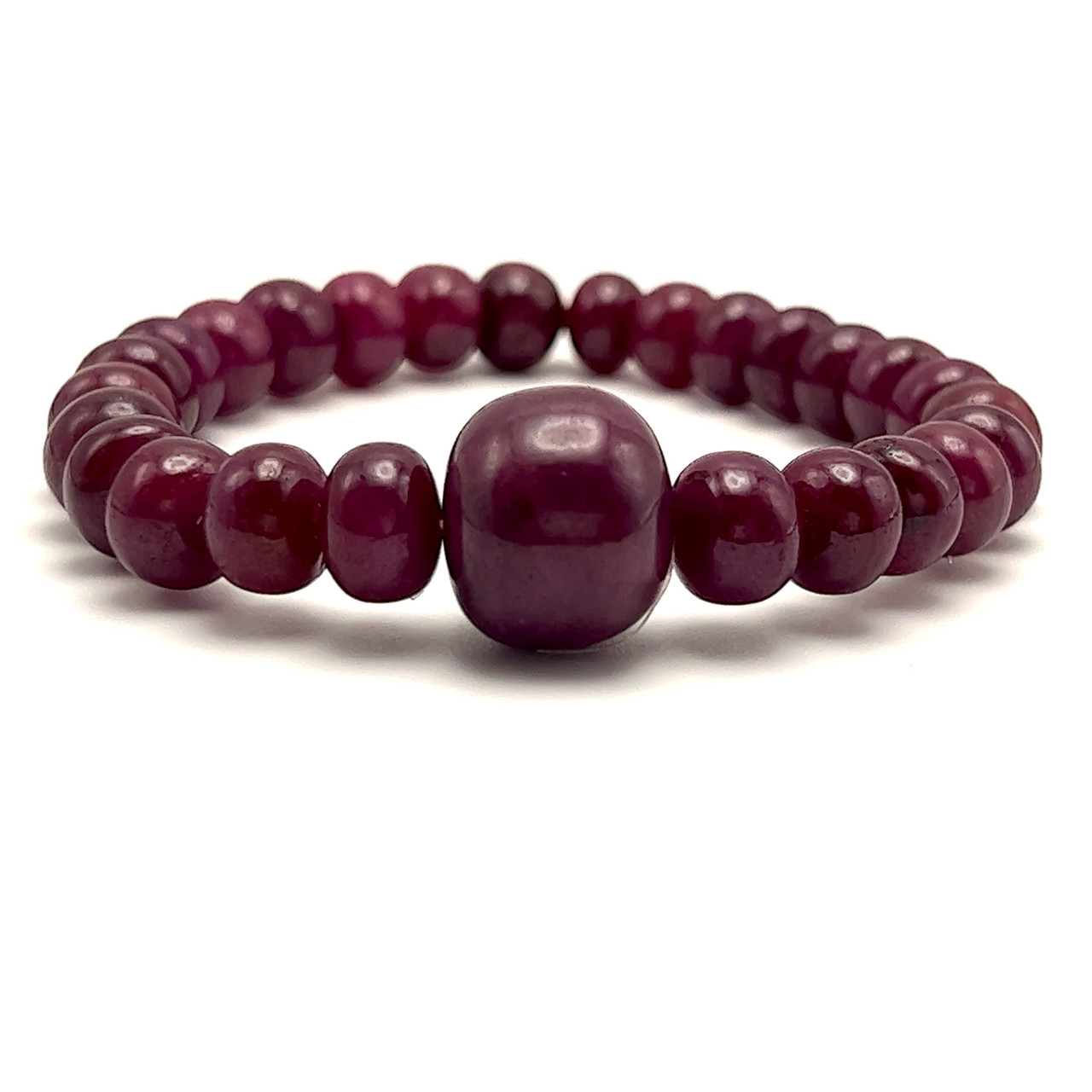 Natural Ruby Bracelet | 8-15mm Smooth Rondelle Beads 27 Pcs 166 Carats | Deep Burgundy Red VVS Clarity | 2.5 Inch Inner Diameter Gemstone Jewelry