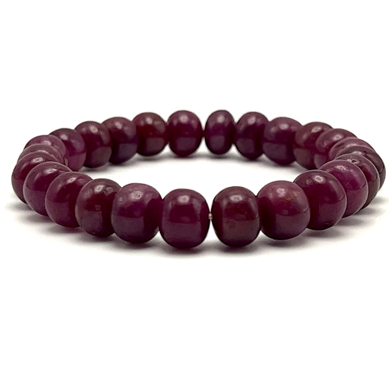 Natural Ruby Bracelet | 8-9mm Smooth Rondelle Beads 25 Pcs 161 Carats | Burgundy Red VVS Clarity | Precious Gemstone Jewelry
