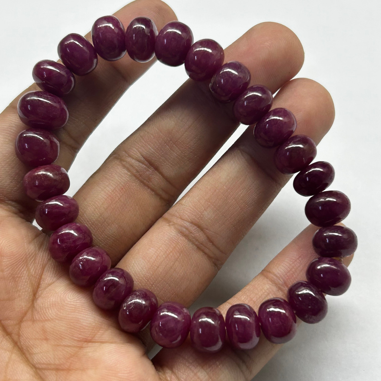 Natural Ruby Bracelet | 9-10mm Smooth Rondelle Beads 27 Pcs 158 Carats | Rich Burgundy Red VVS Clarity | 2.5 Inch Inner Diameter Gemstone Jewelry