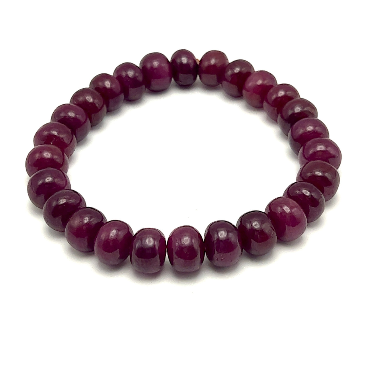 Natural Ruby Bracelet | 9–10mm Smooth Rondelle Beads 26 Pcs 197 Carats | Crimson Red VVS Clarity | Stretchable Unisex Gemstone Jewelry