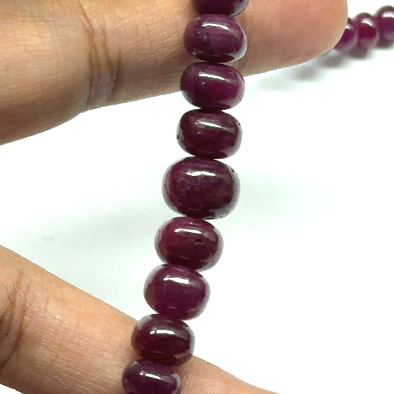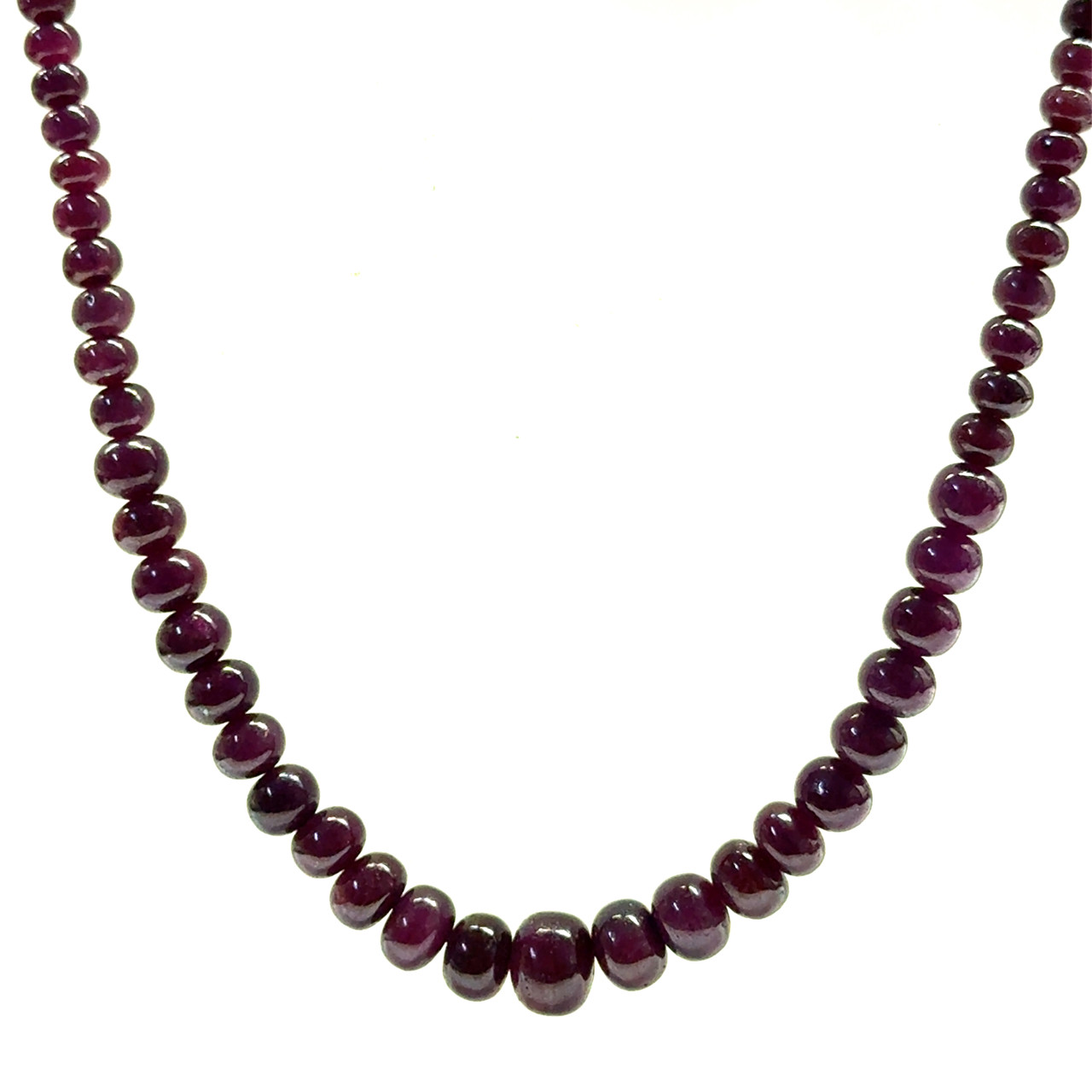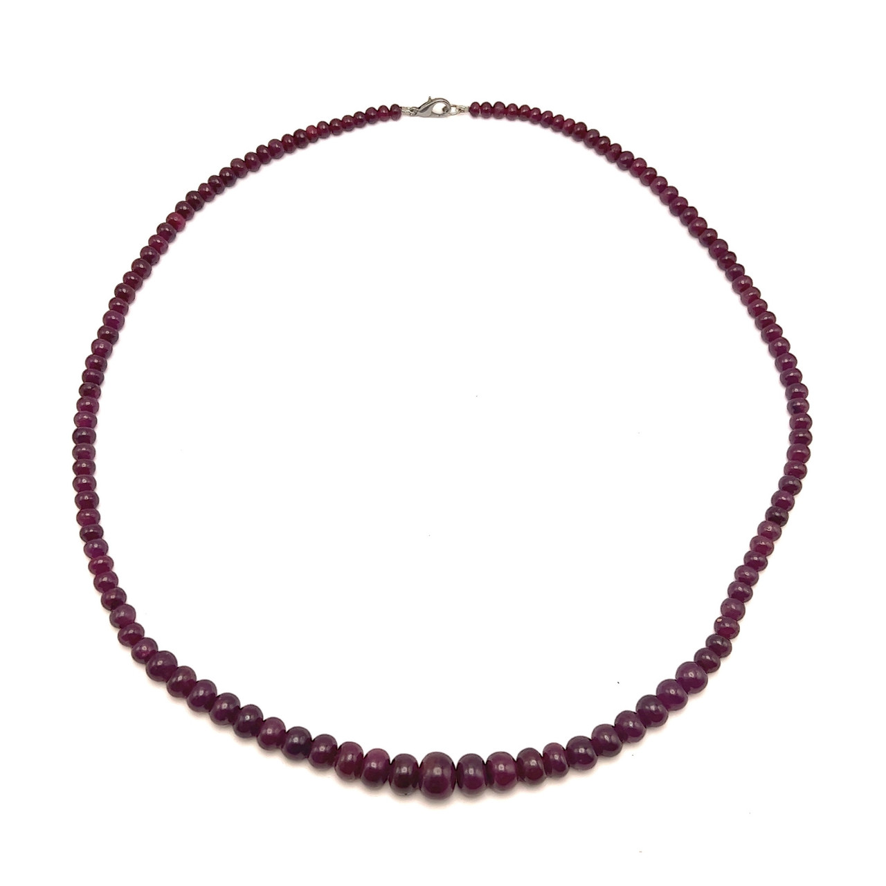 Ruby Natural Bead Necklace | 4–10mm Smooth Rondelle Beads 122 Pcs 233 Carats | Burgundy Red VS Clarity | 22.5 Inch Precious Gemstone Jewelry
