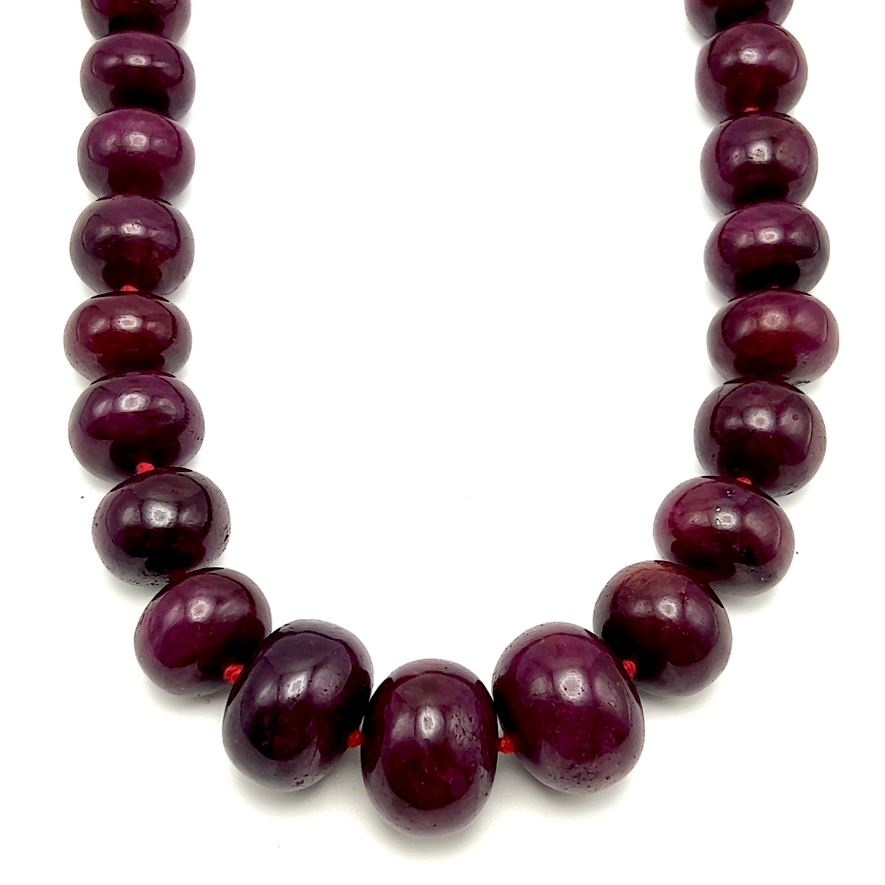 Natural Genuine Ruby Matinee Style Necklace | 16–23mm Smooth Rondelle Beads 45 Pieces 2100 Carats | Crimson Red VVS Clarity | 25 Inch Premium Gemstone Jewelry
