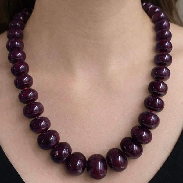 Natural Genuine Ruby Matinee Style Necklace | 16–23mm Smooth Rondelle Beads 45 Pieces 2100 Carats | Crimson Red VVS Clarity | 25 Inch Premium Gemstone Jewelry