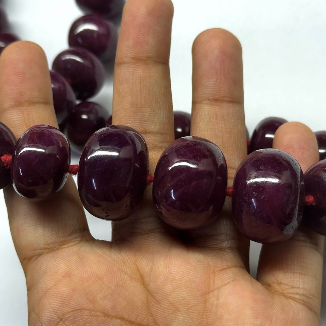 Natural Genuine Ruby Matinee Style Necklace | 16–23mm Smooth Rondelle Beads 45 Pieces 2100 Carats | Crimson Red VVS Clarity | 25 Inch Premium Gemstone Jewelry