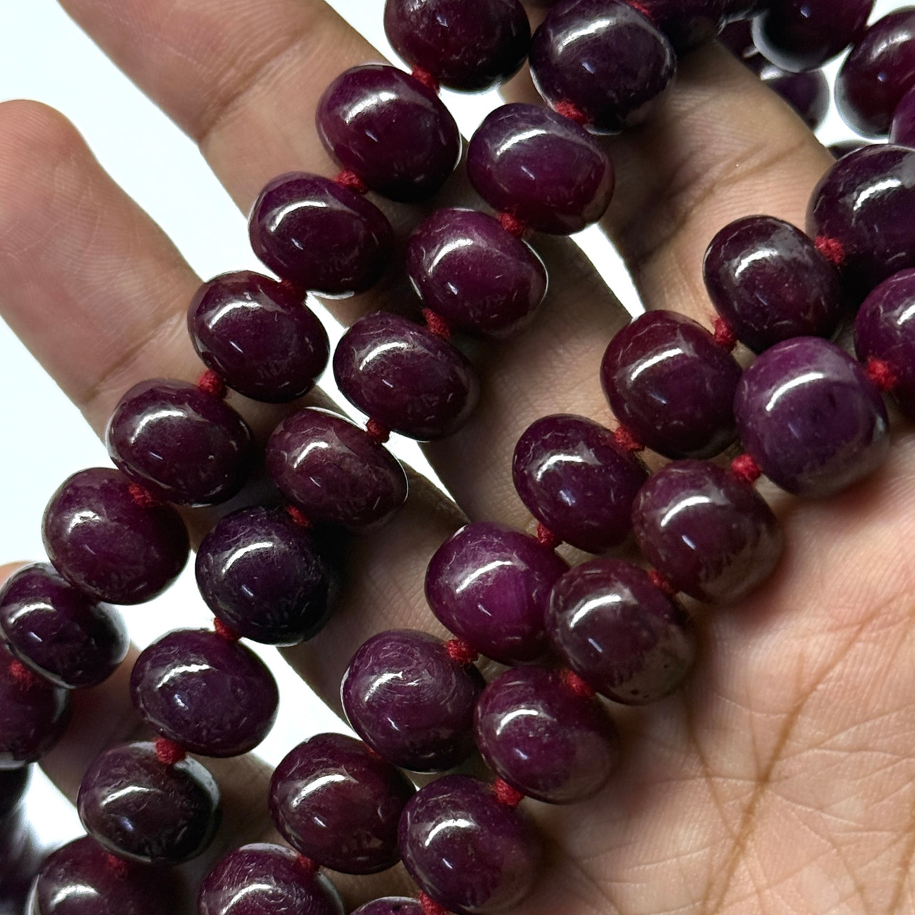 Natural Fine Ruby Necklace | 11–12mm Smooth Rondelle Beads 74 Pcs 853 Carats | Scarlet Red VVS Clarity | 27 Inch Premium Gemstone Jewelry