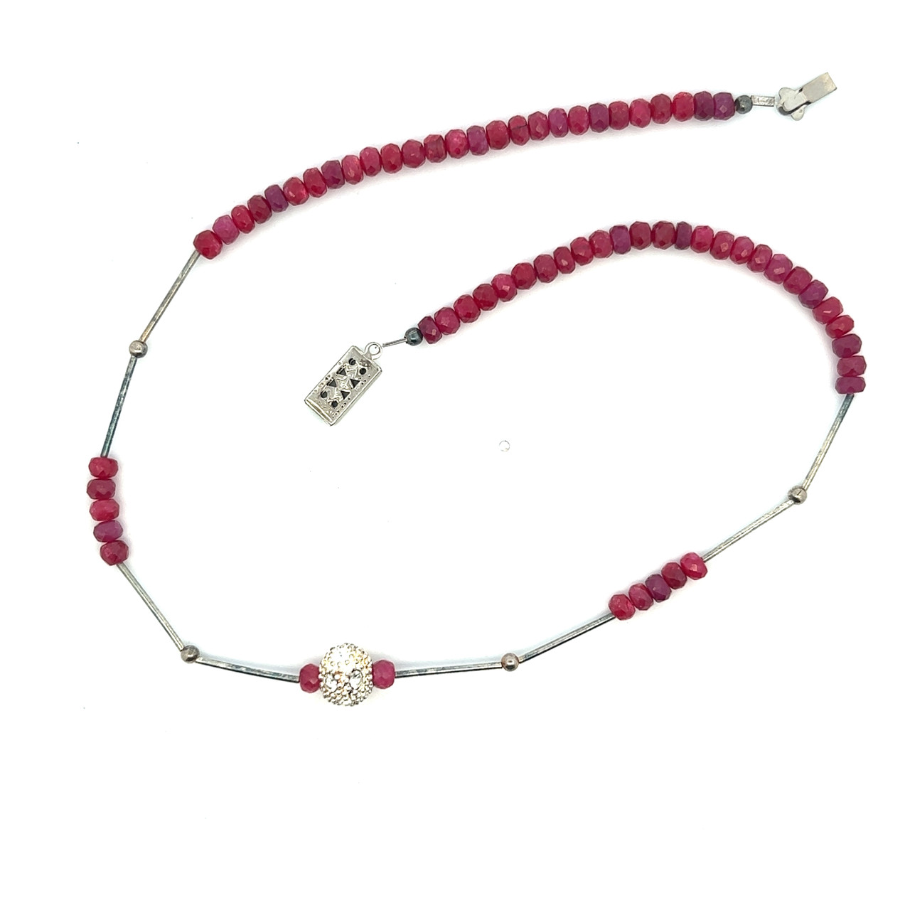 Natural Ruby Rondelle Facet Beads Gemstone Necklace