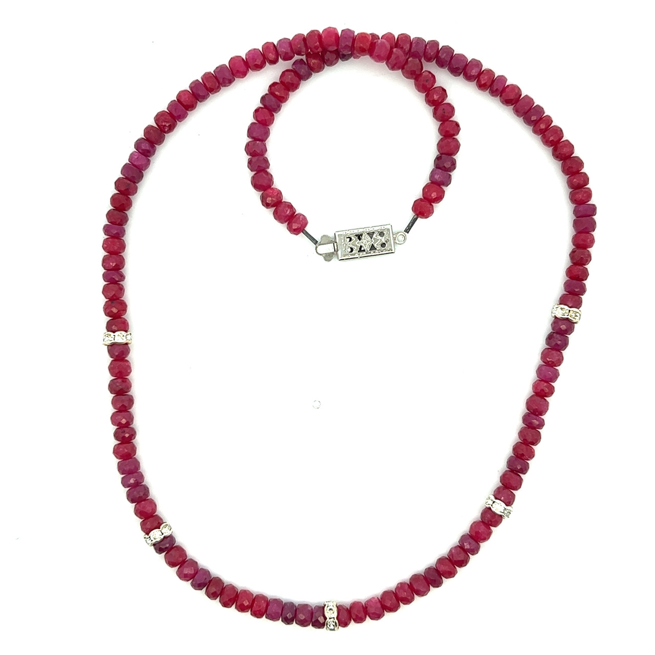 Natural Ruby Rondelle Facet Cut Bead Gemstone Necklace