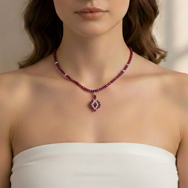 Natural Ruby Rondelle Facet Cut Beads Precious Birthstone Necklace