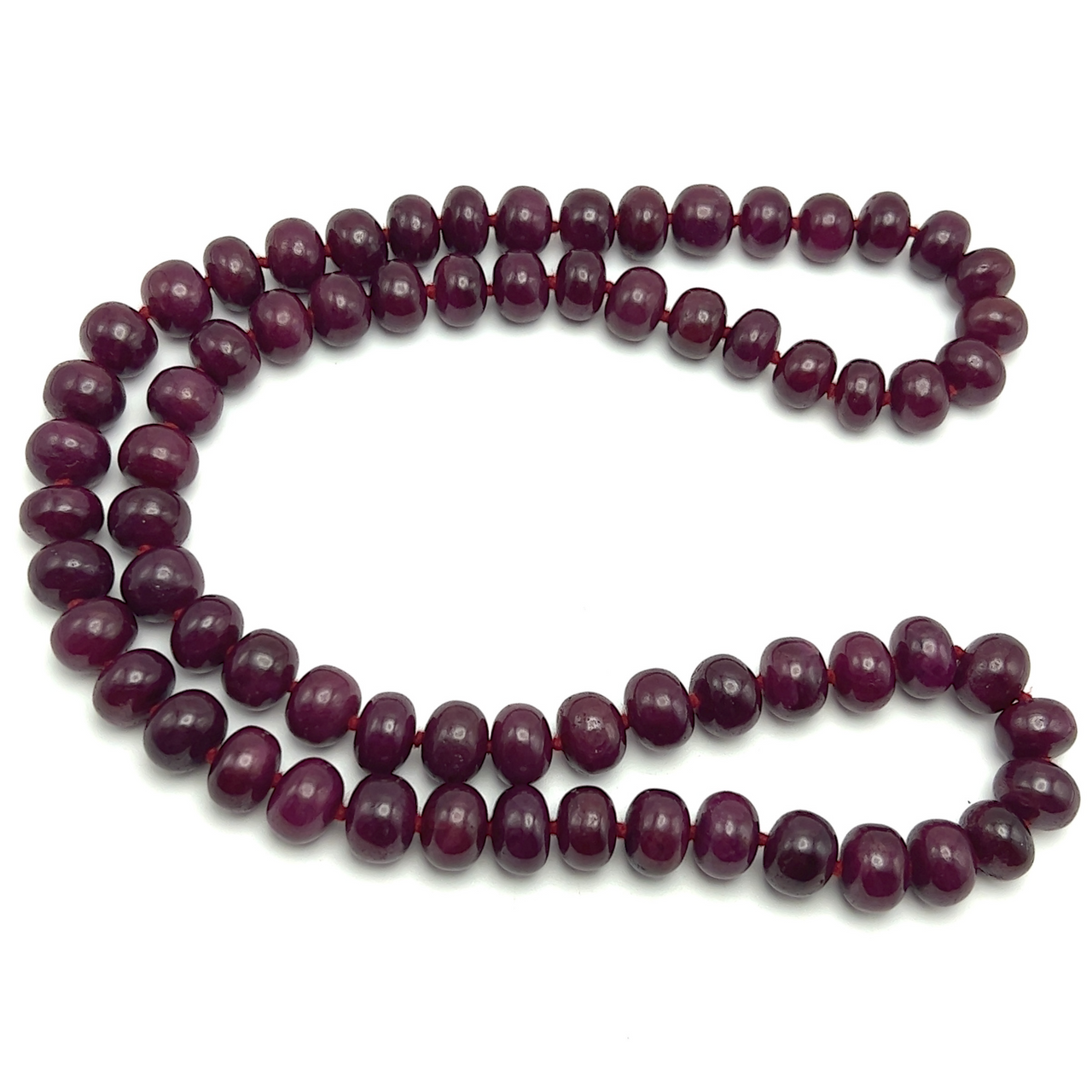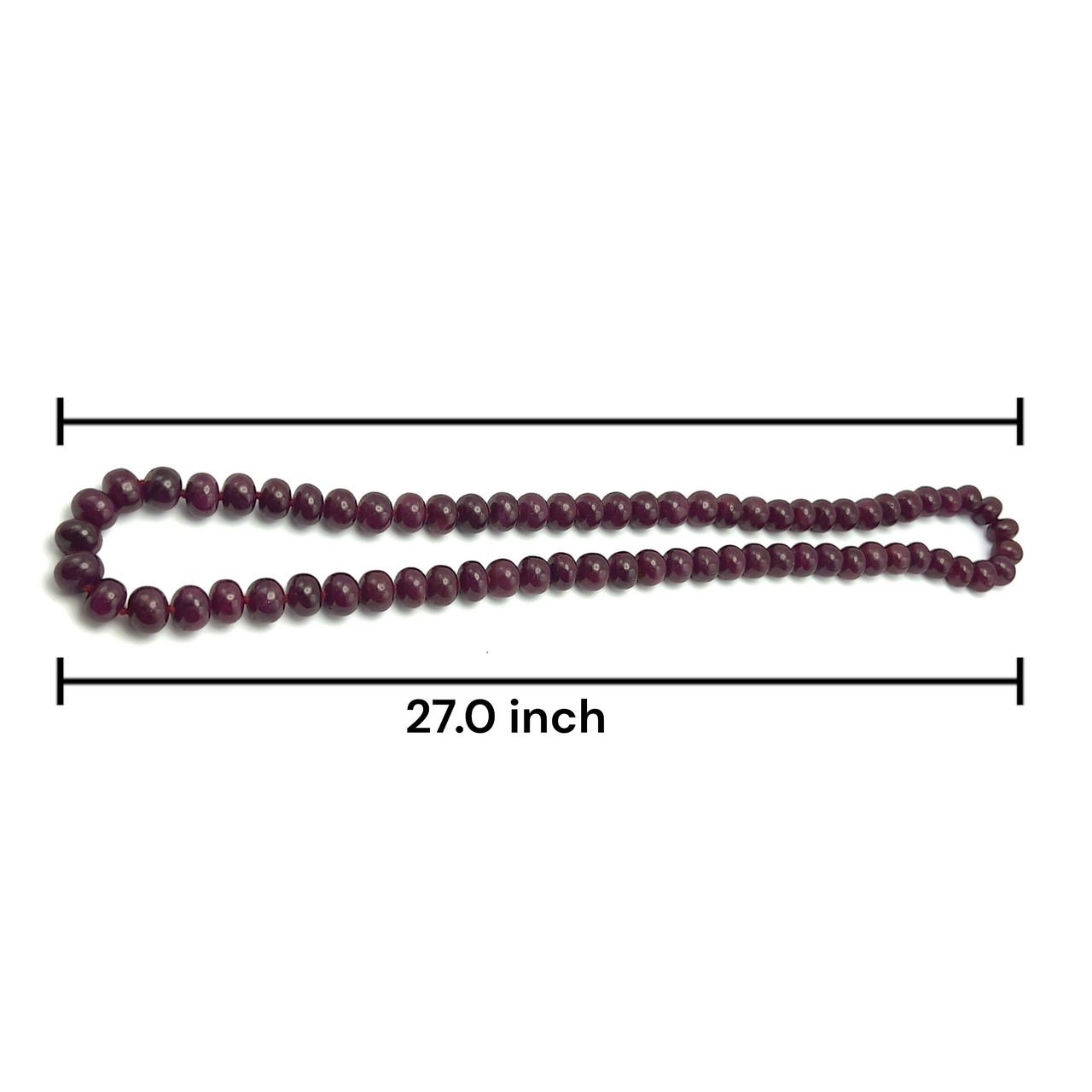 High Premium Natural Ruby Necklace | 12–13mm Smooth Rondelle Beads 69 Pcs 1067 Carats | Scarlet Red VVS Clarity | 27 Inch Classic Gemstone Jewelry