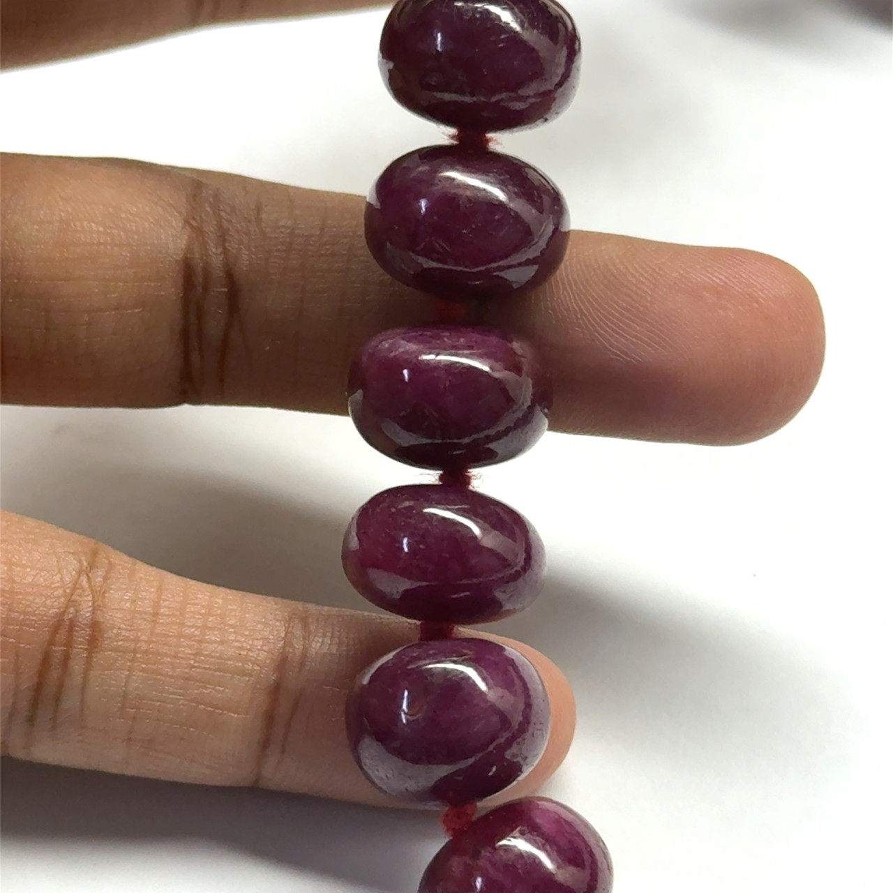 Natural Smooth Ruby Necklace | 13-14mm Rondelle Beads 63 Pcs 1187 Carats | Crimson Red VVS Clarity | 26 Inch Elegant Precious Gemstone Jewelry