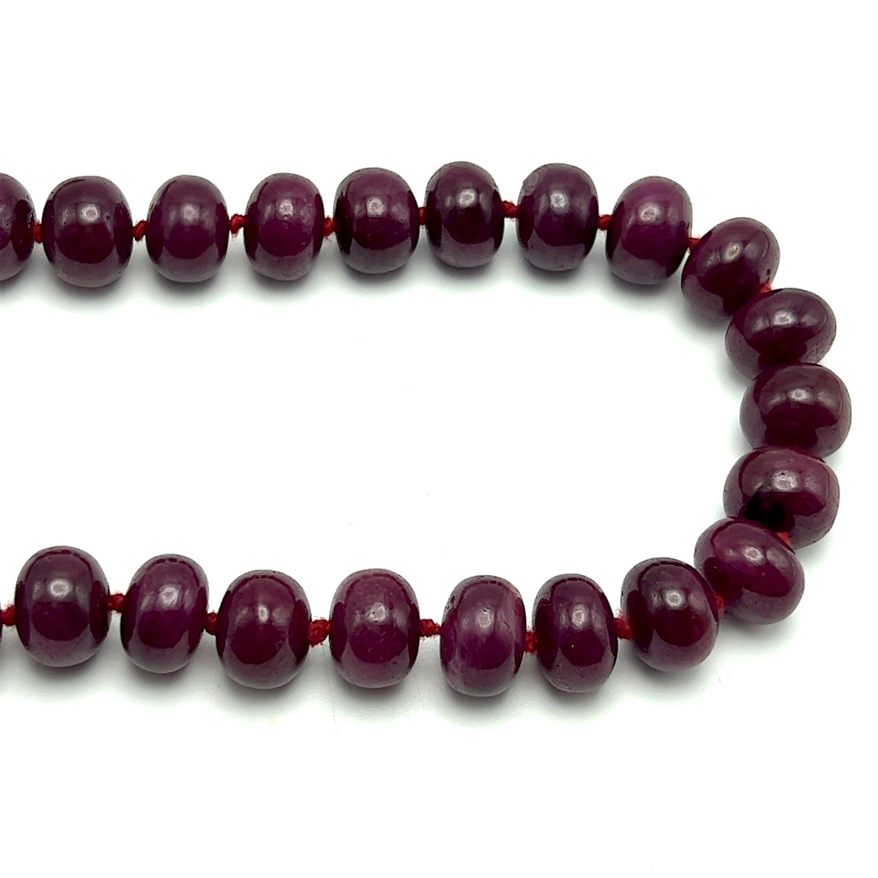 Natural Smooth Ruby Necklace | 13-14mm Rondelle Beads 63 Pcs 1187 Carats | Crimson Red VVS Clarity | 26 Inch Elegant Precious Gemstone Jewelry