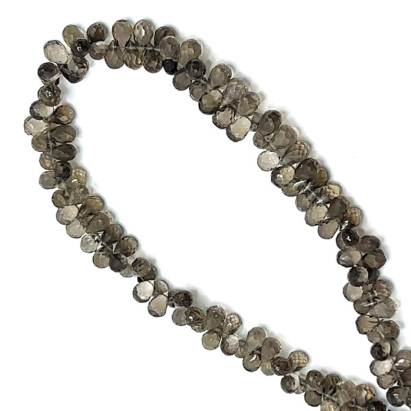 Natural Smoky Quartz | Briolette Facet Cut | Drop Shape | Gemstone Beads | 5x3,5x4mm | Mocha Brown Color | VVS Clarity | 122 Pcs 57 Carats | 12.3 Inch | Jewelry Making