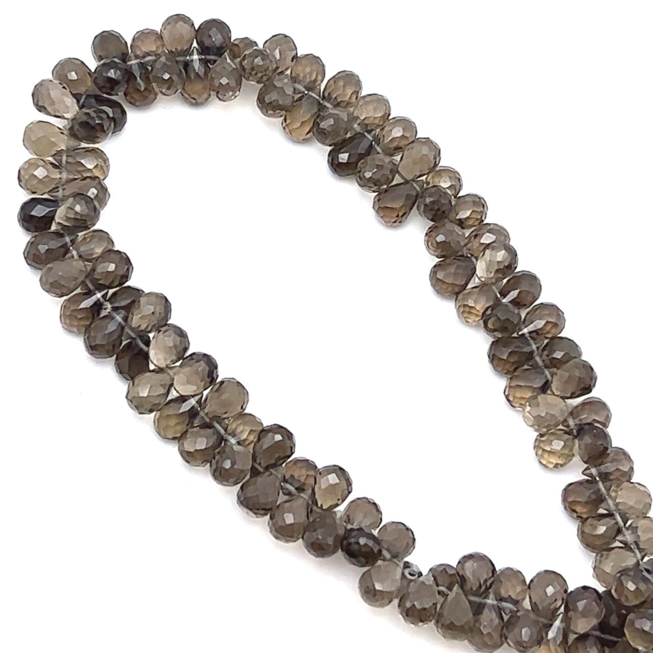 Natural Smoky Quartz | Briolette Facet Cut | Drop Shape | Gemstone Beads | 7x5mm | Cedar Brown Color | 105 Pcs 91 Carats | 8.6 Inch VVS Clarity | June Birthstone | Jewelry Making Supplies