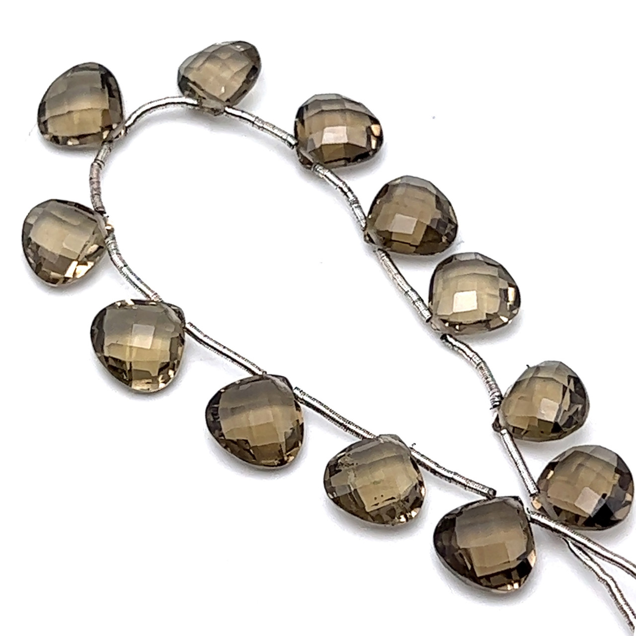 Natural Smoky Quartz | Briolette Facet Cut | Heart Shape | Gemstone Beads | 10mm | Mocha Brown Color | 12 Pcs 33 Carats | 5.75 Inch VVS Clarity | June Birthstone | Jewelry Making Supplies
