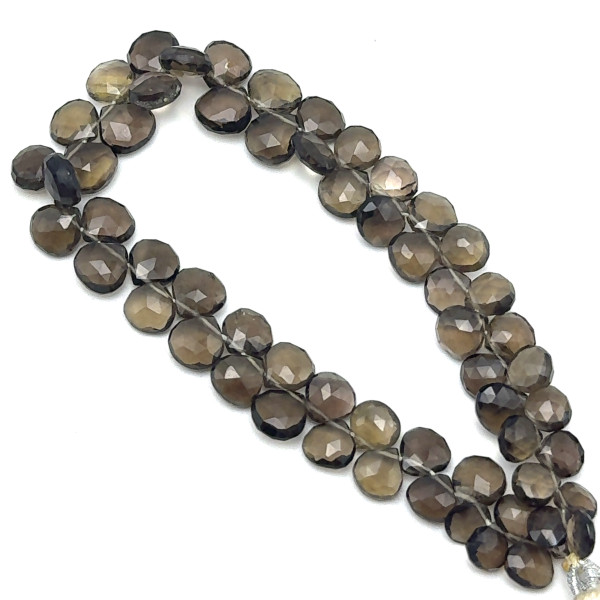 Natural Smoky Quartz | Briolette Facet Cut | Heart Shape | Gemstone Beads | 8mm | Mocha Brown Color | 59 Pcs 71 Carats | VS Clarity | June Birthstone | Jewelry Making Supplies