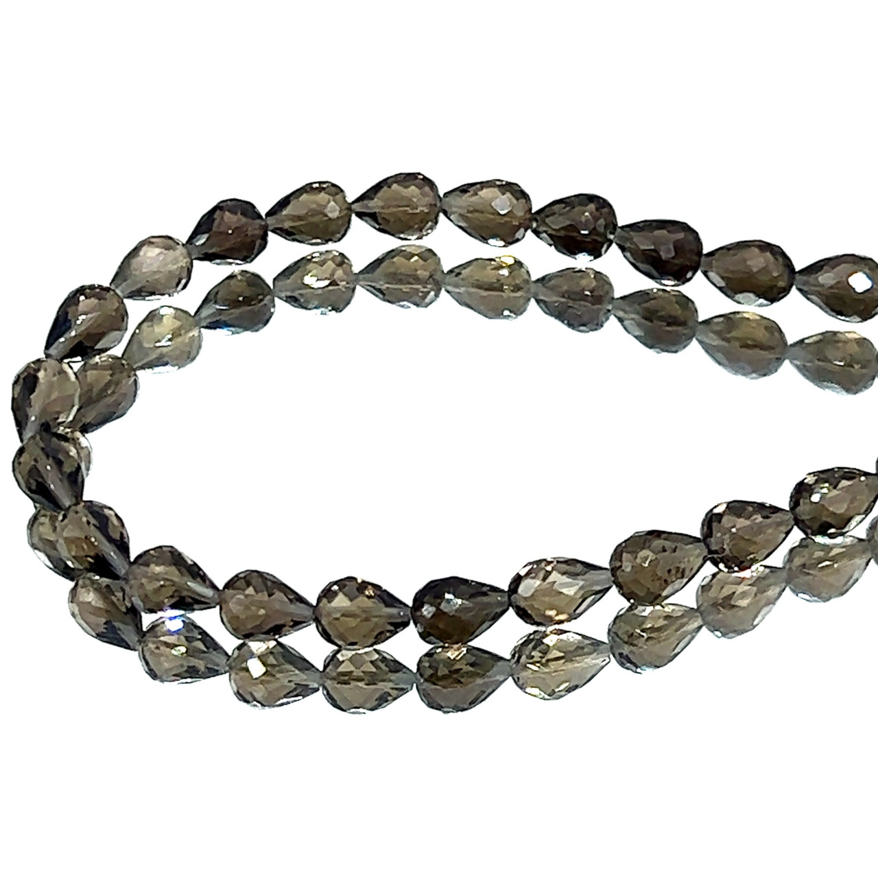 Smoky Quartz Natural Drop 7x5-8x5mm Briolette Facet Cut VVS Clarity Mocha Brown Color Drilled Gemstone