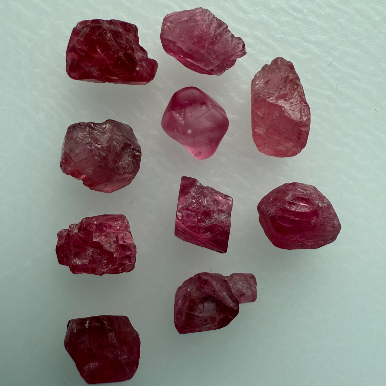 NAME: Natural Spinel Uncut Rough 10 Pieces 17.35 Carats Crimson Red-Hot Pink Color 5A Quality Burmese Mines Raw Gemstone
