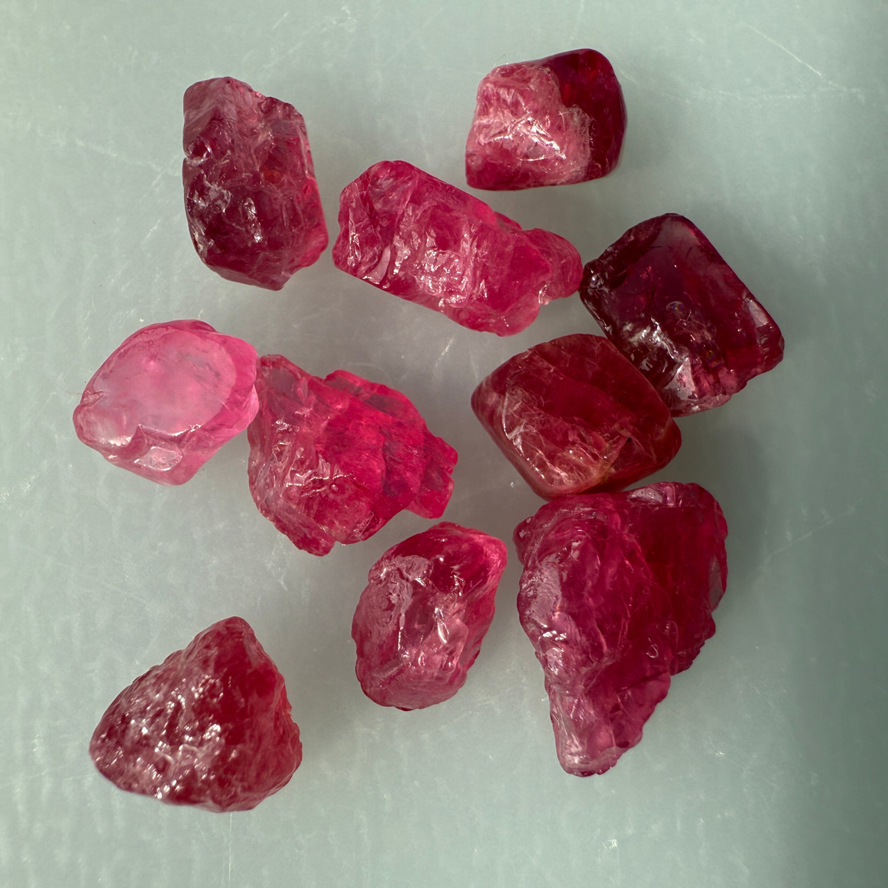 NAME: Natural Spinel Uncut Rough 10 Pieces 25.08 Carats Crimson Red-Hot Pink Color 5A Quality Burmese Mines Raw Gemstone