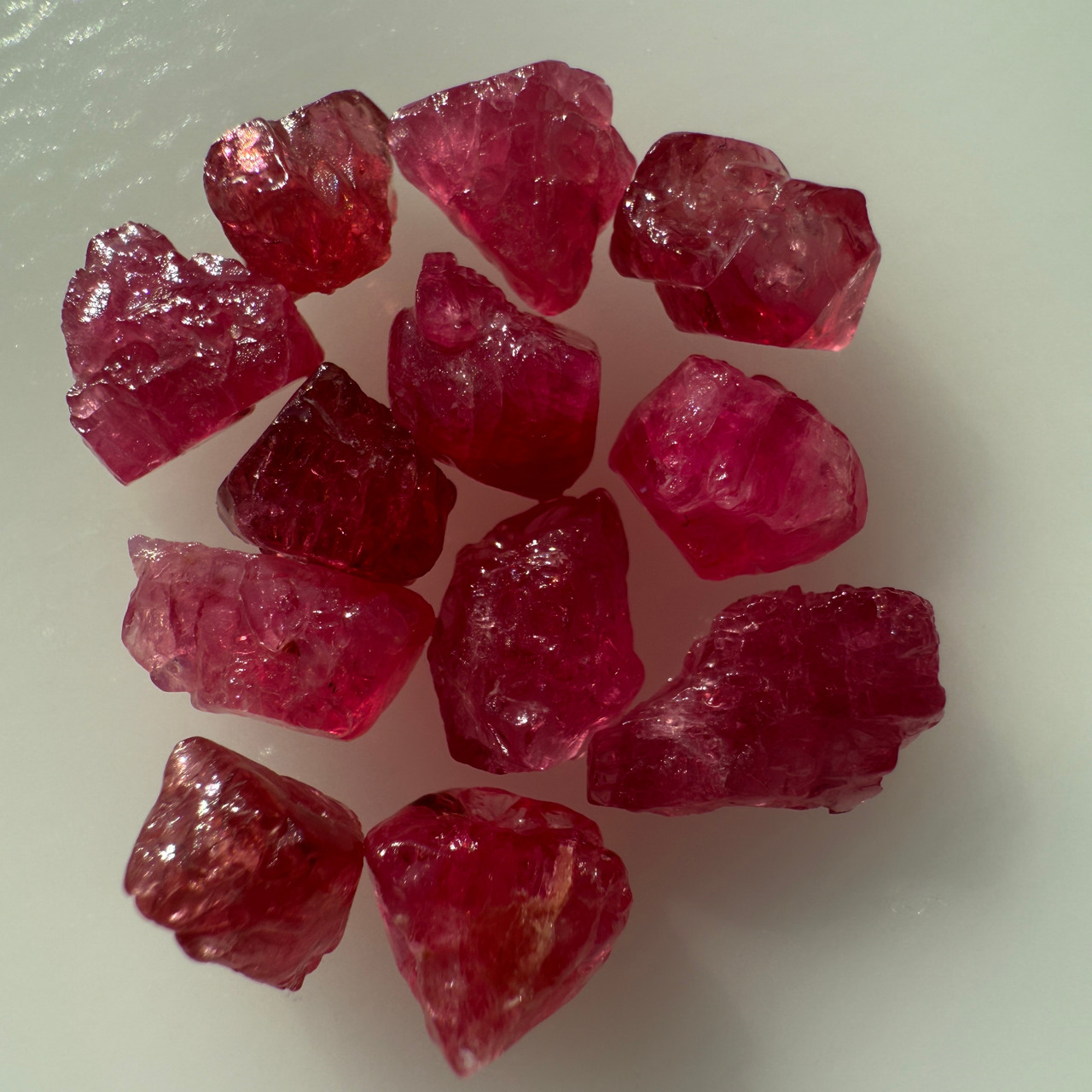 NAME: Natural Spinel Uncut Rough 12 Pieces 19.21 Carats Crimson Red-Hot Pink Color 5A Quality Burmese Mines Raw Gemstone