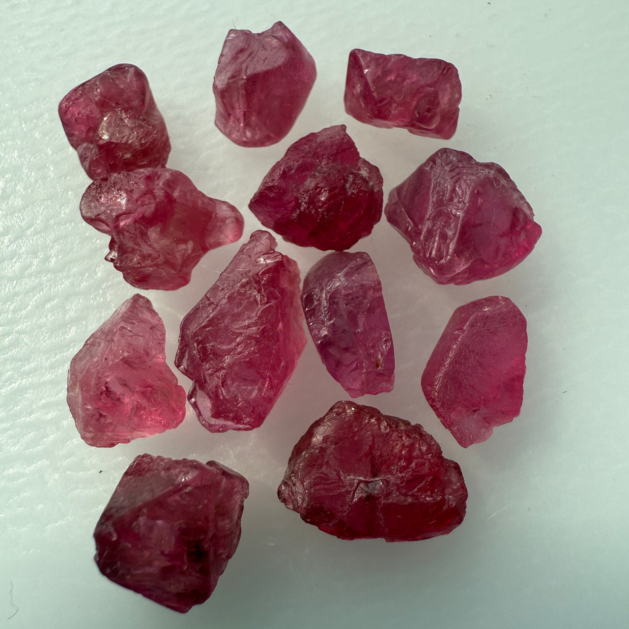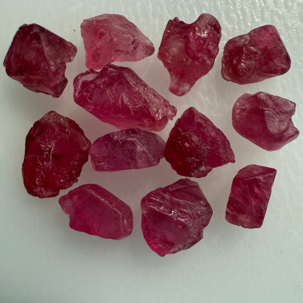 NAME: Natural Spinel Uncut Rough 12 Pieces 34.33 Carats Crimson Red-Hot Pink Color 5A Quality Burmese Mines Raw Gemstone