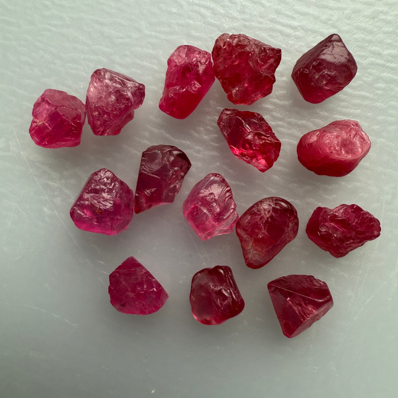 NAME: Natural Spinel Uncut Rough 15 Pieces 20.91 Carats Crimson Red-Hot Pink Color 5A Quality Burmese Mines Raw Gemstone